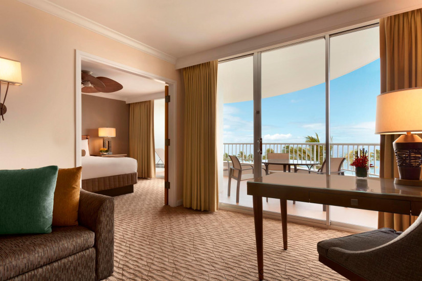 - 80 м2. Состоит из спальни с кроватью king-size или двумя двуспальными кроватями, гостиной с диваном queen-size, обеденной зоной и мини-кухней, ванной комнаты, балкона с частичным видом на океан.