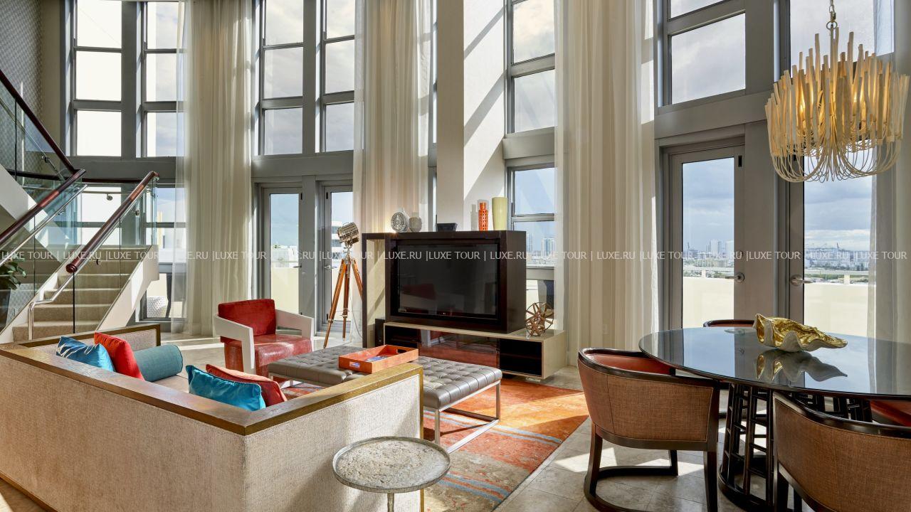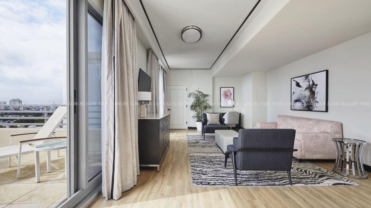 Loews Miami Beach Hotel находится у великолепного пляжа в самом центре Саут-Бич, и, помимо прекрасного расположения, предлагает своим гостям разнообразие услуг. Комфортабельные номера с изысканным декором и великолепным видом на Атлантический океан и Майами, рестораны и бары с превосходной кухней, Spa и фитнес-центры, лазурный бассейн среди тенистых пальм, детский клуб с увлекательными занятиями для маленьких гостей, а также отличные возможности для активного отдыха и проведения мероприятий любого уровня. Loews Miami Beach Hotel сочетает первоклассный современный сервис и элегантную атмосферу квартала Ар-Деко.
