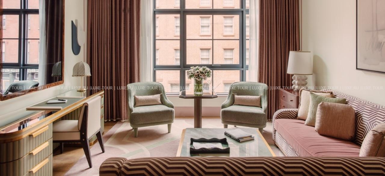 Hotel Barriere Fouquet's New York, расположенный в центре Трайбека – престижного нью-йоркского района «богатых и знаменитых», принадлежит французской компании Groupe Lucien Barrière, известной своими роскошными отелями и казино. За краснокирпичным фасадом с зеркалами окон скрываются элегантные интерьеры в стиле ар-деко, созданные знаменитым дизайнером Мартином Брудницки, изысканный ресторан-брассери с меню от прославленного «мишленовского» шеф-повара Пьера Гарнье, стильный коктейль-бар, летнее кафе на крыше, Spa-центр, предлагающий процедуры с эксклюзивной французской косметикой, и просторные номера с изящным парижским декором и великолепным видом на Гудзон и городские ландшафты Манхэттена. Hotel Barriere Fouquet's New York – островок французского art de vivre среди бурлящей жизни Нью-Йорка.