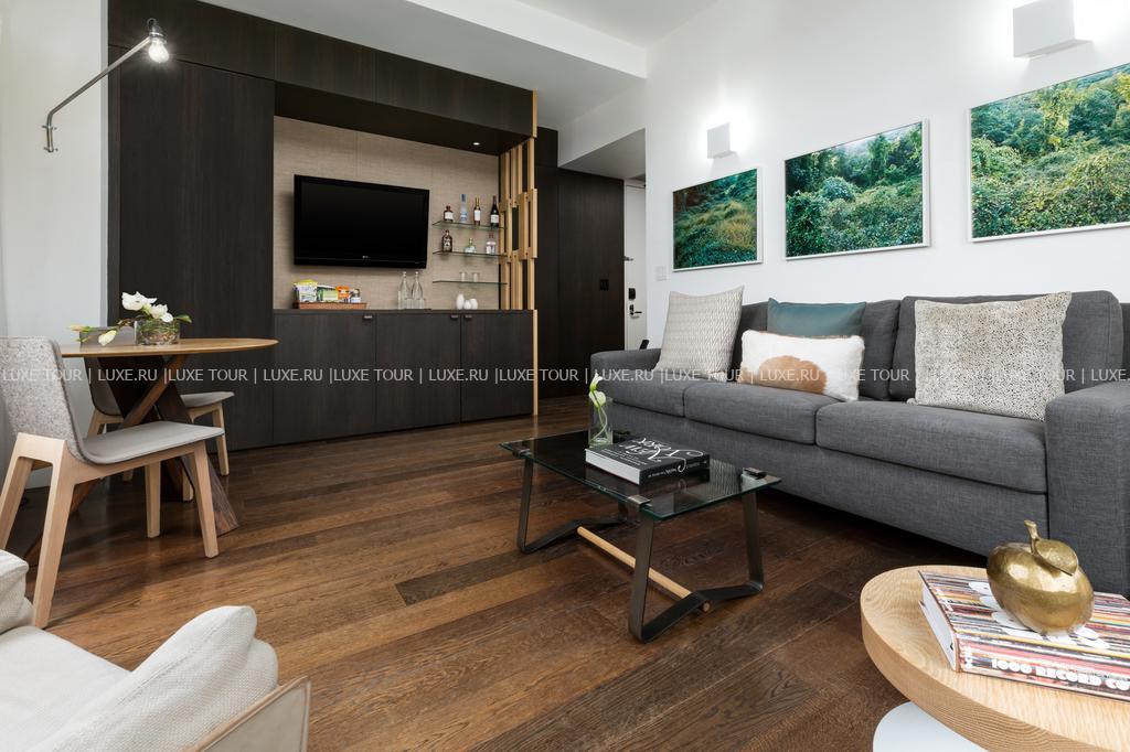 The James New York – SoHo, расположенный в Сохо, идеально вписывается в атмосферу этого богемного нью-йоркского района. За стенами современного бутик-отеля гостей ждут стильные дизайнерские интерьеры, украшенные произведениями художников разных стран, двухэтажное лобби со стеклянными стенами и видом на террасу с живописным садом, бассейн ан крыше, а также уютные комфортабельные номера, ресторан с превосходной кухней, коктейль-бар с панорамным видом на город, круглосуточный фитнес-центр, бизнес-сервис и ряд других услуг. The James New York – SoHo сочетает оригинальный современный дизайн, отличное расположение и высококлассный сервис.