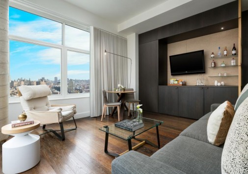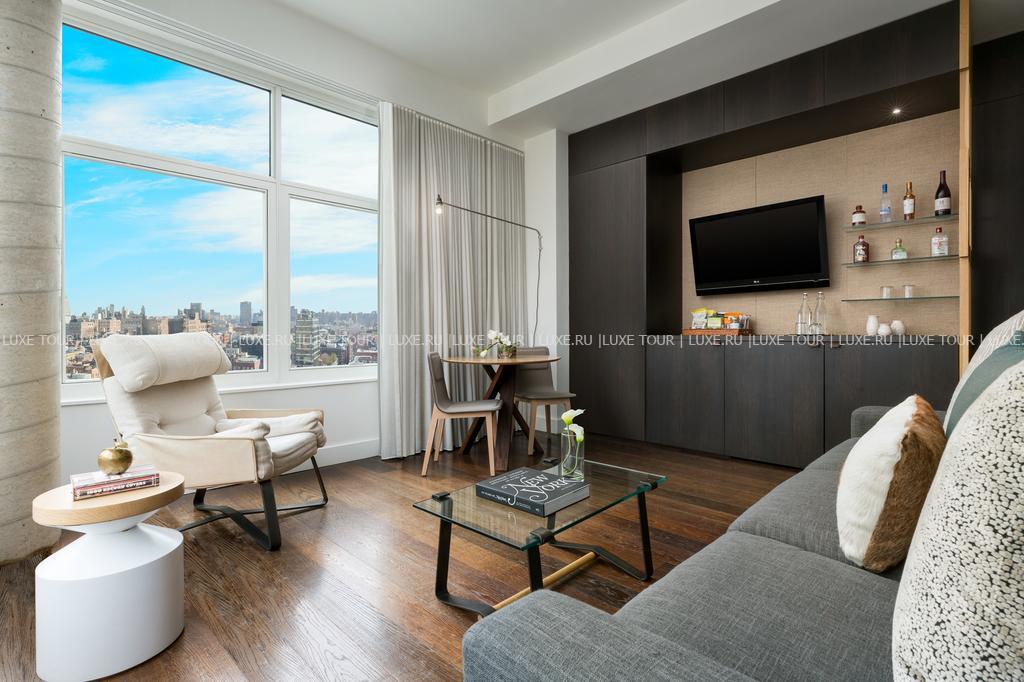 • В стильном баре: Jimmy, расположенном на верхнем этаже, можно насладиться превосходными коктейлями, любуясь панорамным видом на Нью-Йорк. Летом в баре работает открытая терраса.