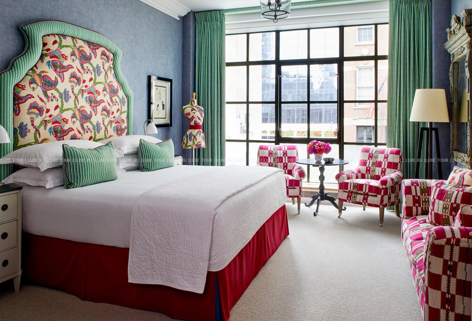 За строгим минималистским фасадом The Whitby Hotel, идеально вписанным в окружающую архитектуру Мидтауна, скрывается настоящая феерия современного дизайна, который, по словам его создательницы – известного британского дизайнера Кит Кемп, «в каком-то смысле является живым существом». Изюминка оригинального интерьера – использование роскошного текстиля разной текстуры и тщательно подобранных произведений искусства. Необычным декором восхищают оформленные в разных цветовых гаммах номера с окнами во всю стену и великолепным видом на центр Нью-Йорка, и уютный бар-ресторан, и элегантные залы для проведения различных мероприятий. The Whitby Hotel – отель для ценителей современного дизайнерского искусства и эксклюзивного сервиса.