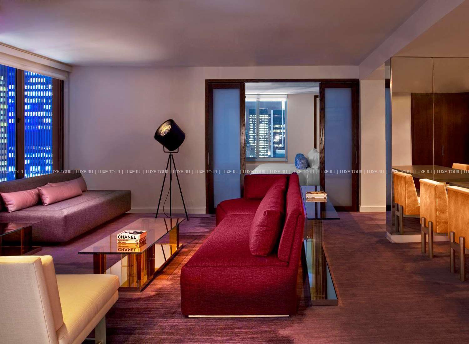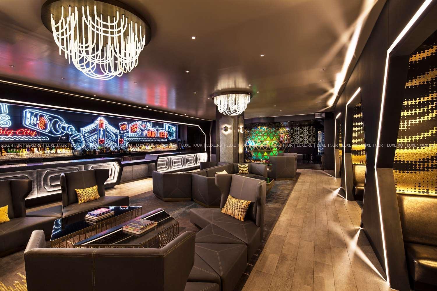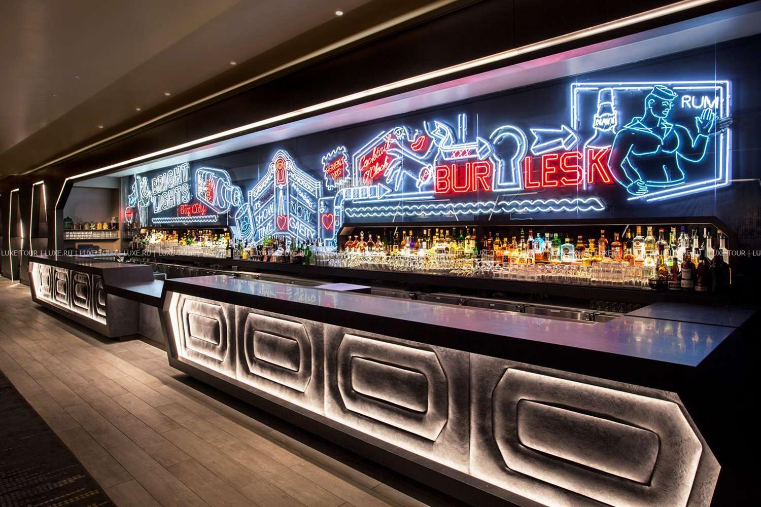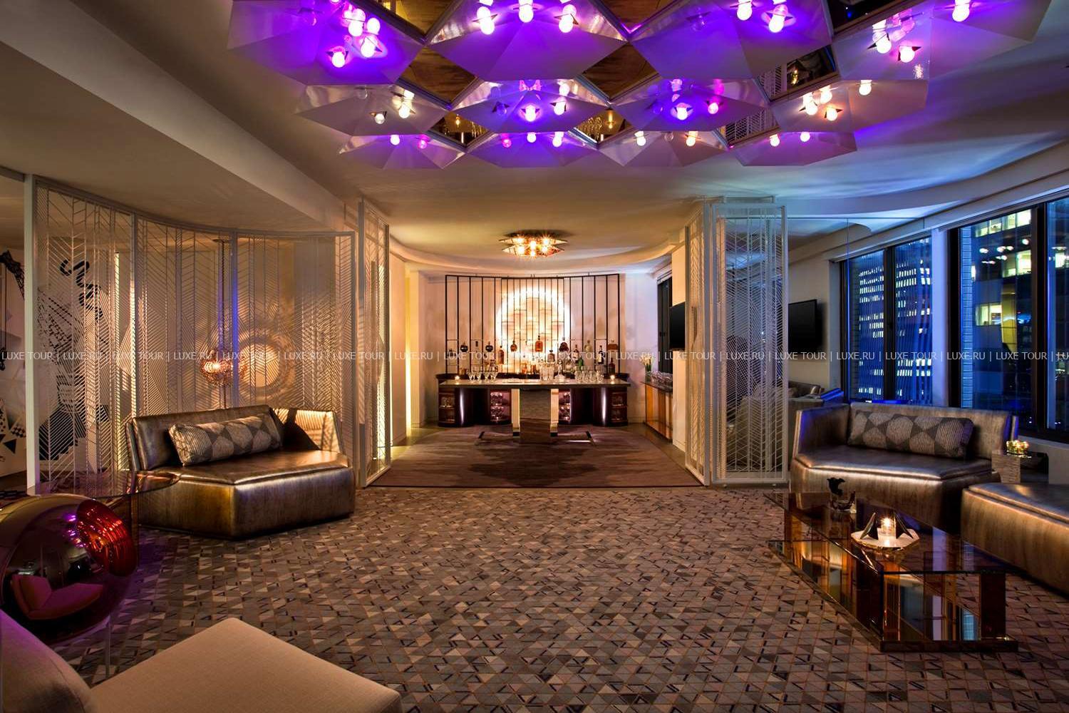 • В зале искусно экранированного бара The Whiskey (697 кв. м) протекает ночная жизнь Нью-Йорка. Это место, как говорят в городе – где Вы видите людей, а они видят Вас.