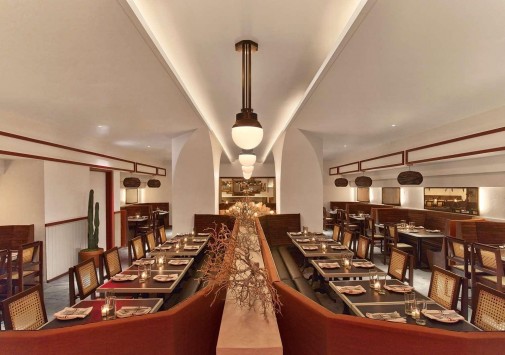 • В ресторане W Living Room нет привычных стен между залами, что создает необычное ощущение пространства. Зал освещается светильниками обтекаемой формы.