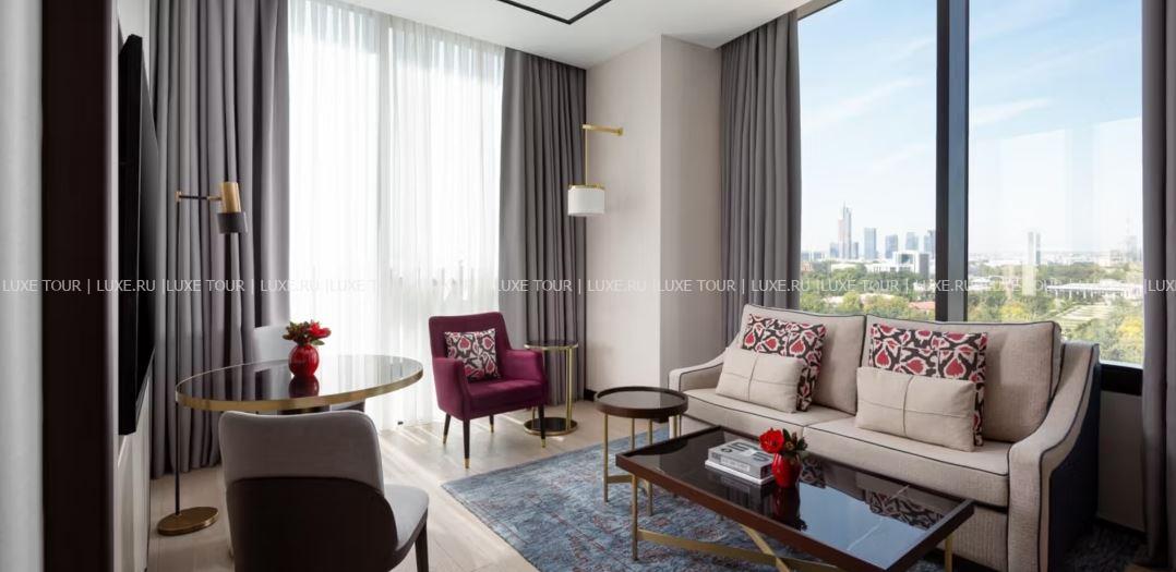 Современное 17-этажное здание InterContinental Tashkent возвышается в самом сердце Ташкента, рядом с главными достопримечательностями города, вид на который открывается из элегантных номеров, из панорамного бассейна и фитнес-центра, с террасы ресторана и бара Embar на 17 этаже, из банкетных и конференц-залов конгресс-центра. InterContinental Tashkent – прекрасный отель для бизнес-путешествий и знакомства с узбекской столицей.