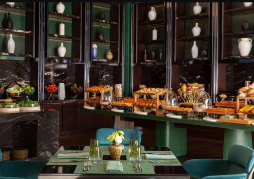 - Ресторан и бар No'mad, оформленный в изумрудных тонах, представляет разнообразие блюд международной и средиземноморской кухни.