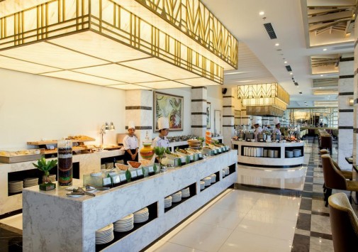 • В ресторане Greens сервируют «шведский стол» с блюдами международной и вьетнамской кухни.