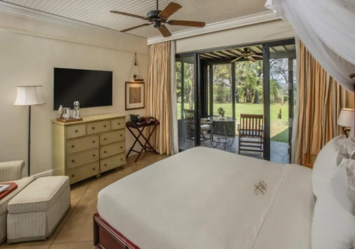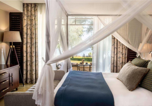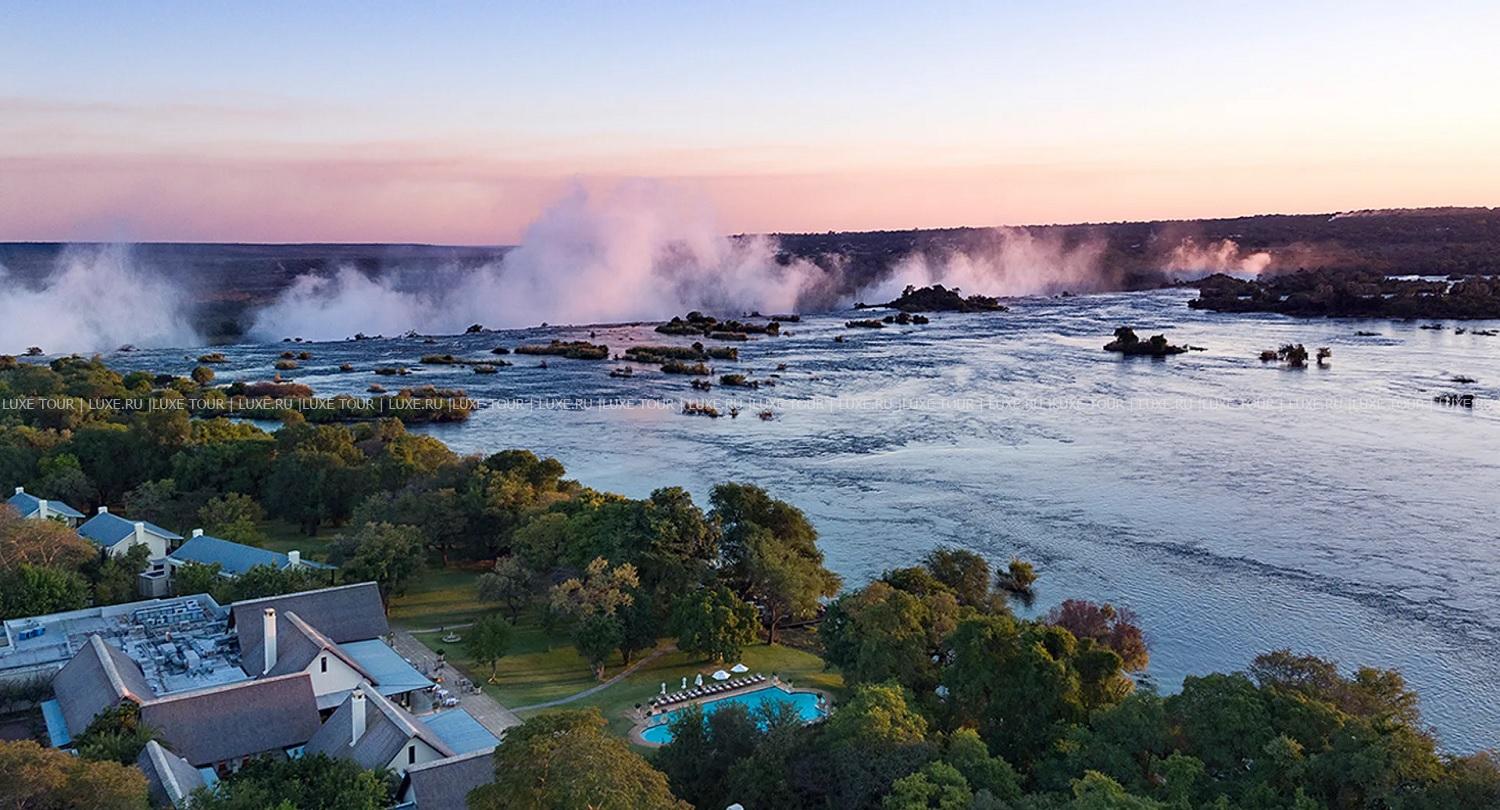 The Royal Livingstone Victoria Falls Zambia Hotel by Anantara находится на берегу реки Замбези, в чудесном саду с тенистыми деревьями и свободно гуляющими зебрами и жирафами. Прямо из сада можно выйти к могучему водопаду Виктория, а чарующий вид на реку, сад и саванну открывается в отеле отовсюду – с террас изысканно декорированных номеров, элегантных ресторанов и баров, из бассейна, тренажерного зала и павильонов Spa-центра. The Royal Livingstone Victoria Falls Zambia Hotel by Anantara сочетает атмосферу сафари-парка, эксклюзивный сервис и уникальное расположение рядом с всемирно известным водопадом.