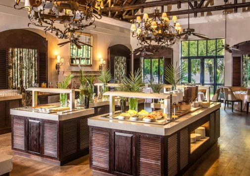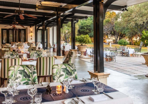 - Ресторан The Old Drift с просторной верандой и видом на сад и реку предлагает блюда современной европейской и замбийской кухни.