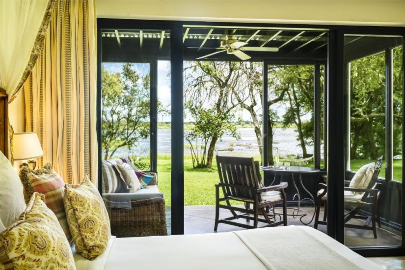 - Отель располагает номерами различных категорий, включая Guest Room и Suite. Элегантный интерьер номеров навеян эпохой исследователей и колониальным стилем, а с балконов и террас открывается прекрасный вид на реку Замбези и живописный сад, по которому гуляют зебры и жирафы. Гостям всех номеров предоставляются услуги дворецкого.