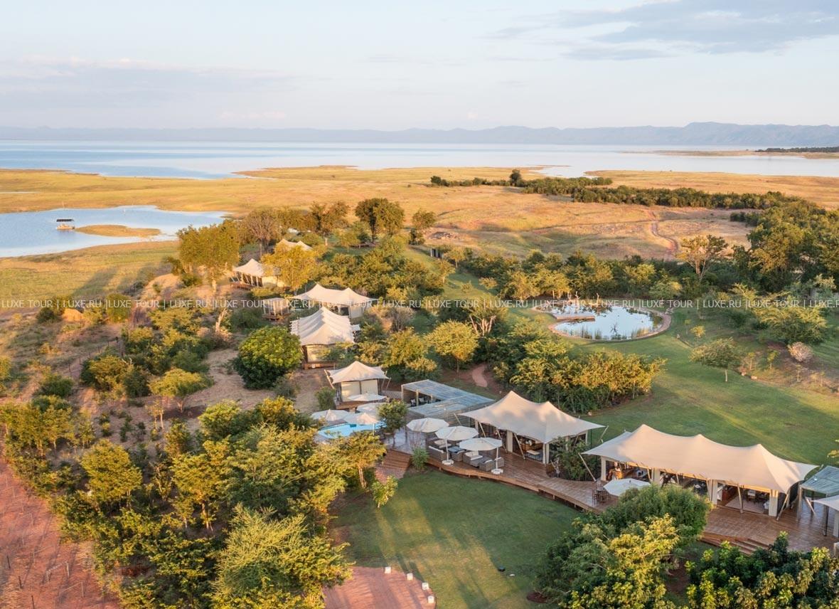 115 м2. Состоит из спальни с двуспальной кроватью или двумя кроватями twin и зоной отдыха с диваном, ванной комнаты на открытом воздухе (с душем или с ванной и душем), террасы с небольшим бассейном, зоной отдыха и обеденной зоной под навесом, и видом на озеро. Номера-тенты расположены на возвышенных платформах.