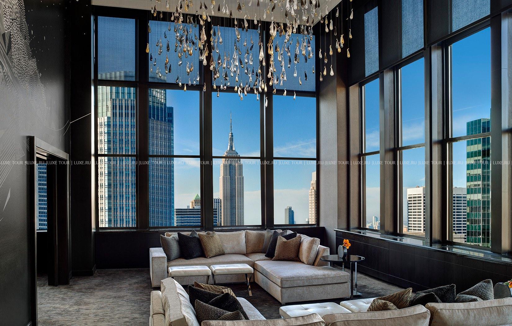55-этажная башня Lotte New York Palace возвышается в самом сердце Манхэттена, напротив собора Святого Патрика, рядом с Бродвеем, Рокфеллеровским центром и Центральным парком. Легендарный отель ведет свою историю с 1882 года, когда известный финансист Генри Виллард построил здесь элегантное здание, дополненное впоследствии современной башней. Сегодня на верхних этажах башни располагаются шикарные номера Towers — отеля в отеле. За годы своей истории Lotte New York Palace принимал многих мировых знаменитостей и неоднократно использовался как съемочная площадка для различных сериалов и фильмов, например, таких как «Закон и порядок», «Поцелуй на удачу» или «27 свадеб». Lotte New York Palace впечатляет роскошью интерьеров и разнообразием услуг класса «люкс» — от элегантных номеров с захватывающим видом на Нью-Йорк, роскошных баров и салонов, воссоздающих атмосферу «старого» Нью-Йорка, до современно оборудованного СПА/фитнес-центра и залов для разноплановых мероприятий, занимающих четыре этажа.