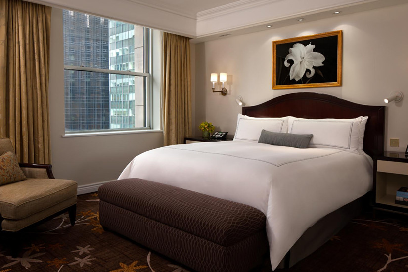 - 45 м2. Расположен с 4 по 20 этажи, состоит из спальни с кроватью king-size или двумя кроватями queen и зоной отдыха, ванной комнаты с ванной и душем, вид на 55 улицу или Пятую Авеню. Максимальное размещение – 4 человека. Возможно соединение с Deluxe Room, Deluxe Suite или Grand Suite.