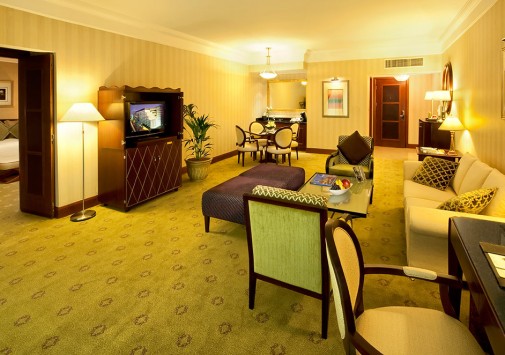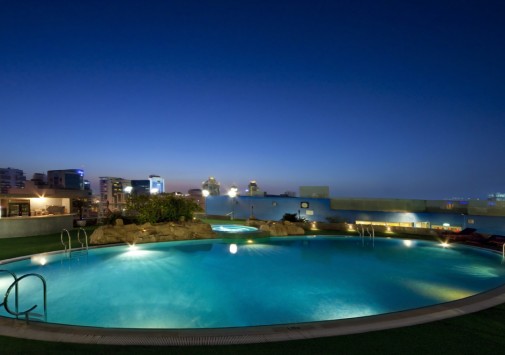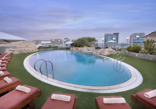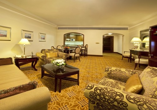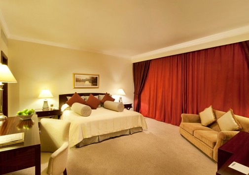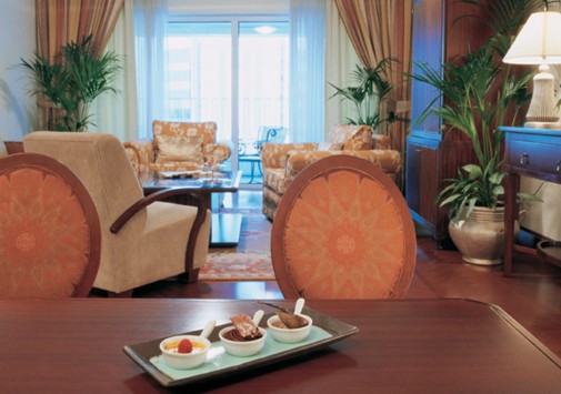Стройный комплекс из стекла, бетона и металла уравновешивает свой современный вненациональный стиль сбалансированным убранством номеров и холлов. Здесь вычурный арабский орнамент, традиционно яркая гамма красок и множество небольших, но существенных для общего стиля элементов сосуществуют с дизайнерской мебелью, дорогими тканями, оригинальными светильниками и цветочными композициями, взаимно дополняя и обогащая друг друга.