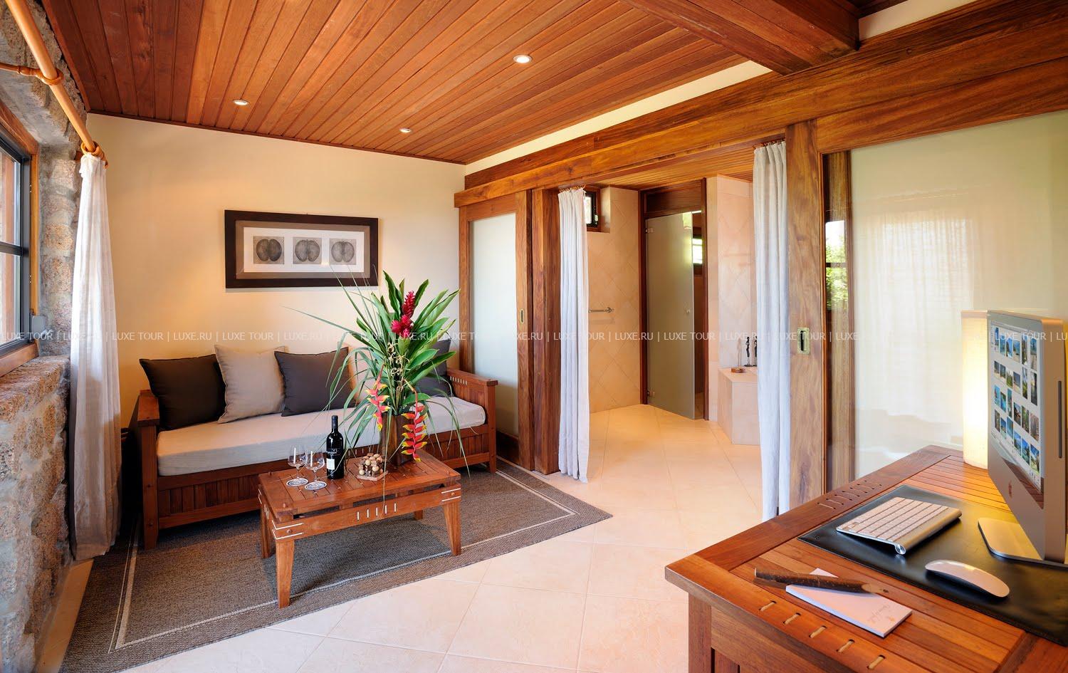 У белоснежного просторного пляжа и бирюзовых вод Индийского океана, в окружении 5 гектаров пышного тропического сада расположились просторные бунгало и виллы Château de Feuilles, увенчанные тростниковыми крышами и построенные из гранитного камня и редких пород дерева. В отеле всего 9 номеров, оборудованных по последним технологиям, с элегантными интерьерами, сочетающими современный дизайн и традиции Сейшел. На территории Château de Feuilles находится открытый бассейн, гидромассажная ванна, тренажерный зал, спа Центр, предлагаются различные виды водного спорта, глубоководная рыбалка, велосипед, морские прогулки, экскурсии по острову Праслин и на близлежащие острова, включая романтический уик-энд и барбекю на необитаемом соседнем острове Grand Sœur. Ресторан Château de Feuilles предлагает изысканные блюда креольской и интернациональной кухонь, блюда из свежайших морепродуктов и рыбы, а в баре представлено разнообразие напитков и экзотических коктейлей. К услугам гостей — магазин сувениров, автомобильная парковка, бесплатный прокат автомобилей.