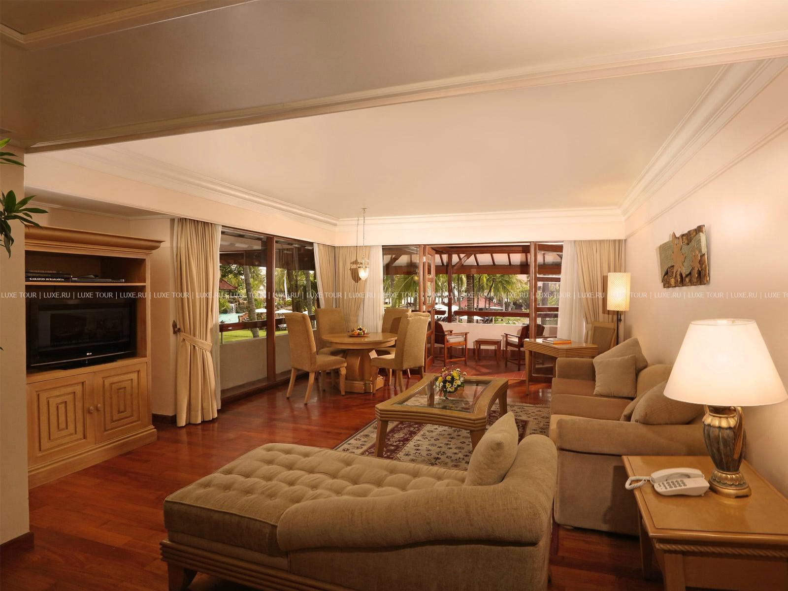 Отель расположен непосредственно на песчаном пляже Тубан, недалеко от Куты, в 5 км от аэропорта.