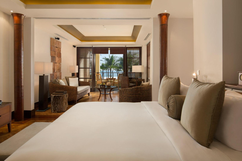 - 274 м2. Роскошный номер с видом на океан, декорирован в светлых тонах и отделан натуральным деревом и камнем, в оформлении интерьера использована плетеная мебель и предметы изобразительного искусства местных мастеров. Состоит из двух спален с кроватью king-size в одной и двумя кроватями twin в другой (возможно размещение дополнительной складной кровати), холла, гостиной со столовой зоной, двух ванных комнат и двух просторных балконов. Максимальное размещение – 4 взрослых + 1 ребенок (до 12 лет).
