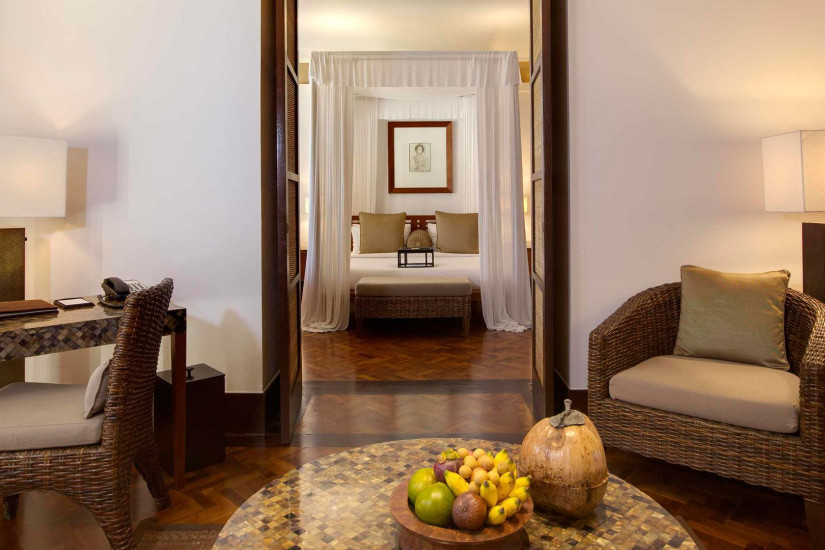 - 110 м2. Роскошный наполненный светом номер в колониальном стиле с видом на океан состоит из спальни с кроватью king-size или двумя кроватями twin (возможно размещение дополнительной складной кровати), гостиной со столовой зоной, ванной комнаты и просторной меблированной террасы. Максимальное размещение – 2 взрослых + 1 ребенок (до 12 лет) или 3 взрослых.