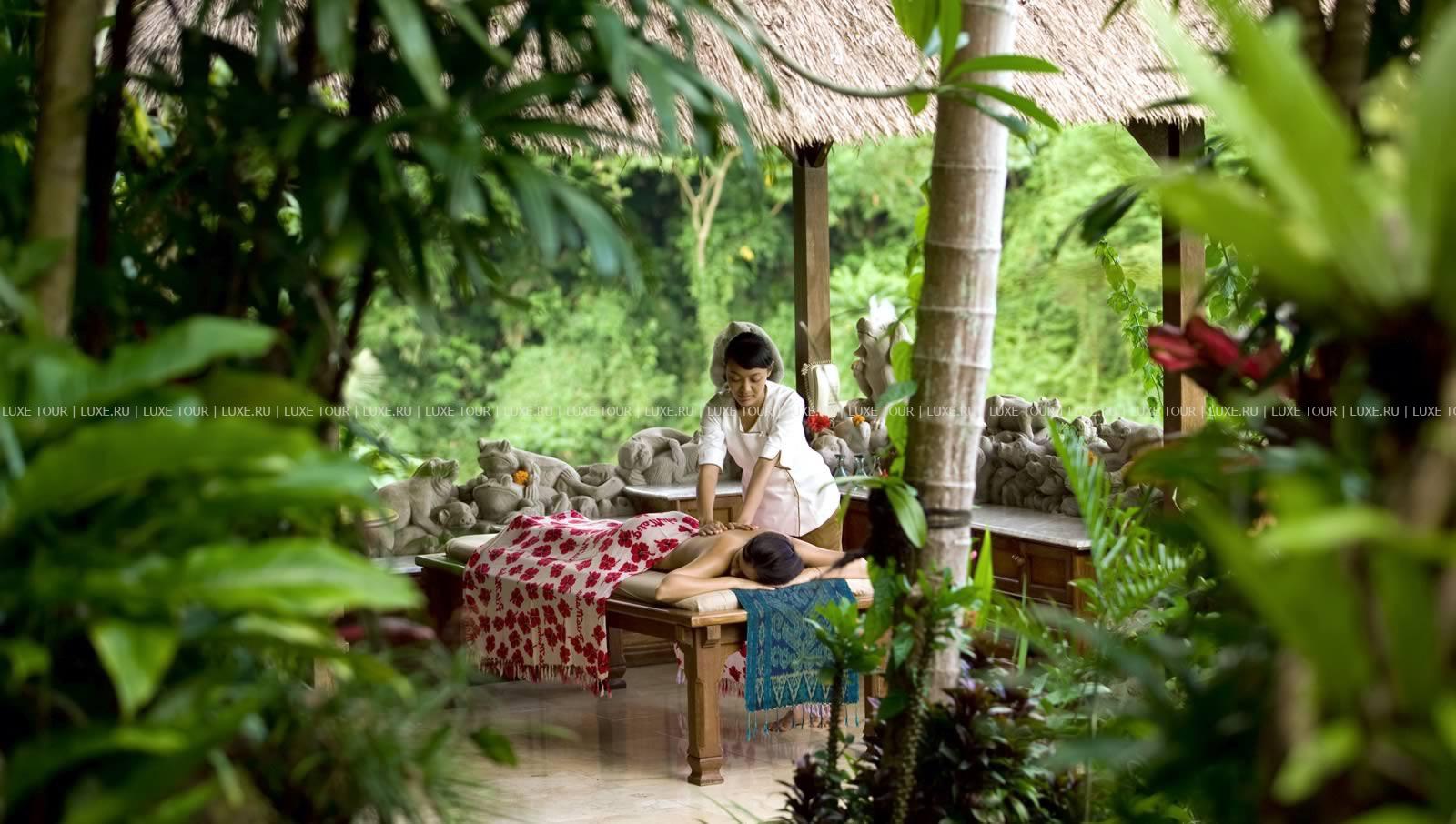 Различные виды массажа, балийский массаж, аромотерапия, программы по уходу за лицом и телом, джакузи с горячей и холодной водой, ванны с родниковой водой.