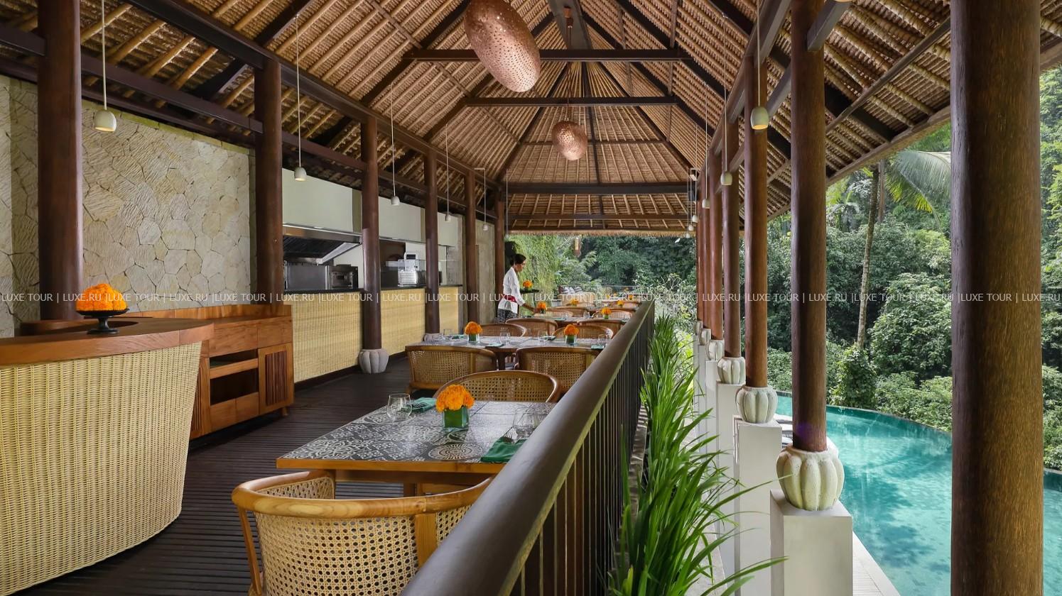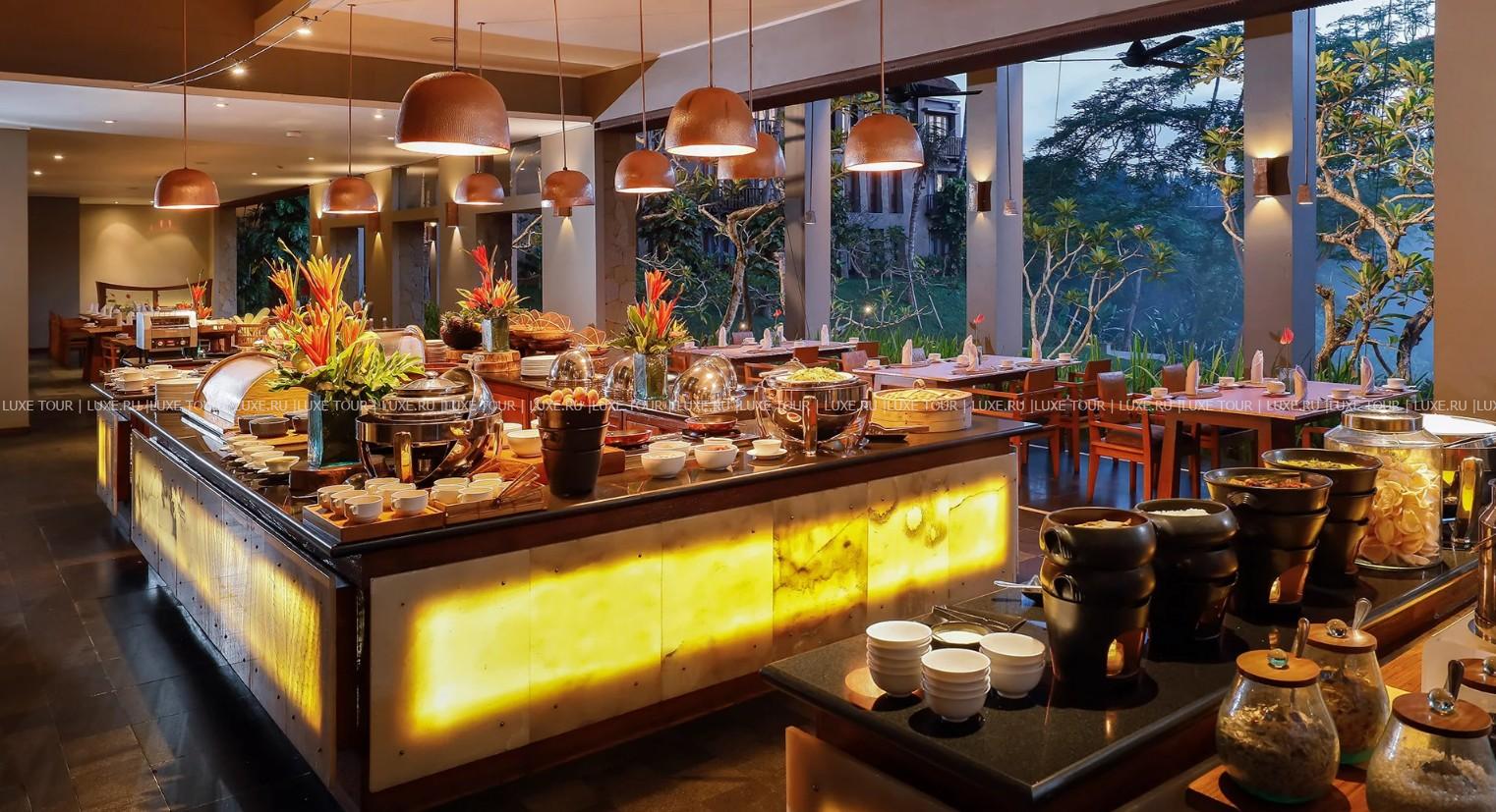 В ресторане Maya Sari Mas предлагаются буфеты завтраков, а также меню a la carte обедов и ужинов, представляющее блюда классической интернациональной кухни, ресторан Maya Sari Asiatique, выходящий во внутренний дворик с фонтаном, представляет разнообразие блюд азиатской кухни – Китая, Японии, Индонезии и Индии. В River Café, расположенном на берегу реки Petanu, подаются легкие закуски, салаты, пицца и блюда СПА меню, а уютном баре Bedulu, под традиционной соломенной крышей, предложен большой выбор экзотических коктейлей, соков из тропических фруктов и холодное пиво. К услугам гостей – конференц-зал, открытый театр для представлений, автомобильная парковка, аренда автомобилей, шаттл в центр Убуда, курсирующий каждый час. Maya Ubud Resort & Spa – прекрасный отель для незабываемого отдыха и знакомства с культурой и традициями древнего острова Бали.