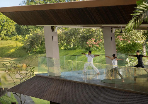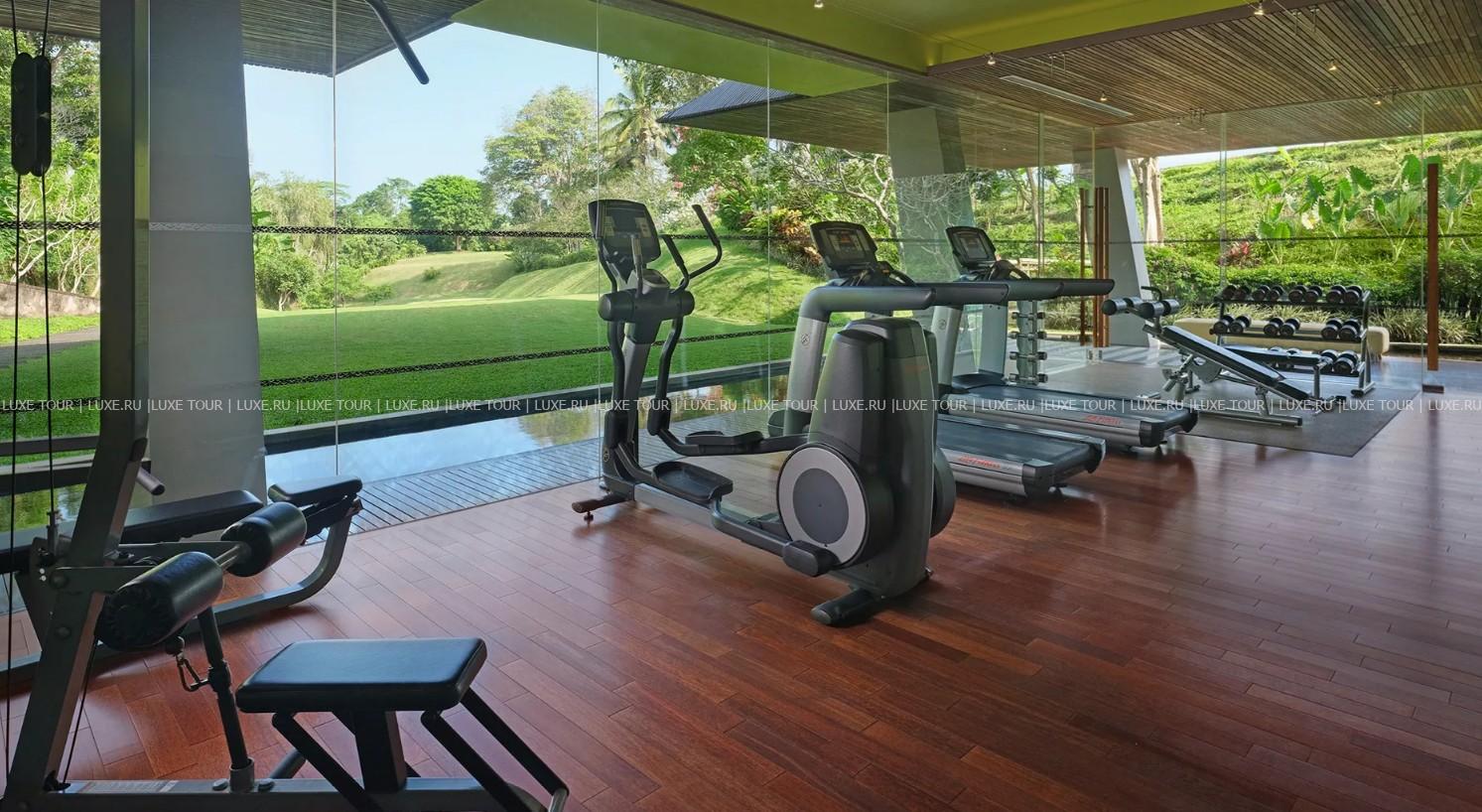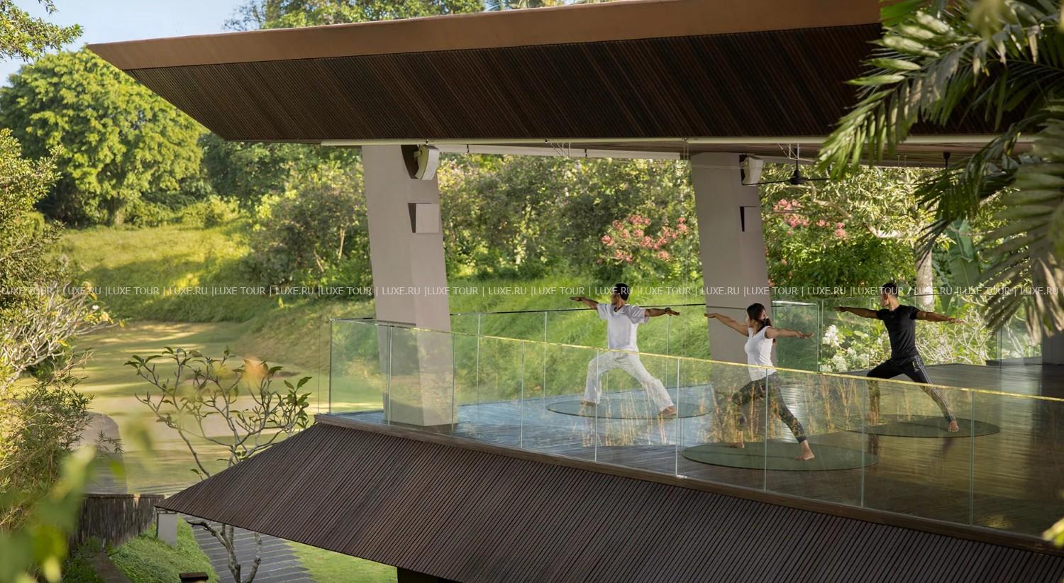 Оборудованный по последнему слов техники фитнес-центр отеля удовлетворит самых взыскательных гостей. На верхнем этаже располагается зона для занятий йогой площадью 187 м2 с потрясающим видом на сады и рисовые поля. По утрам здесь проводятся занятия для начинающих. Также возможны индивидуальные, групповые занятия йогой и различные целительные практики.