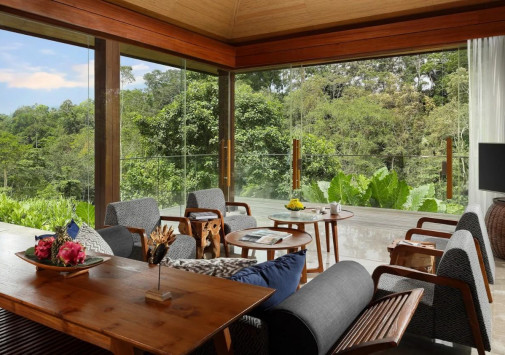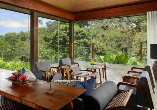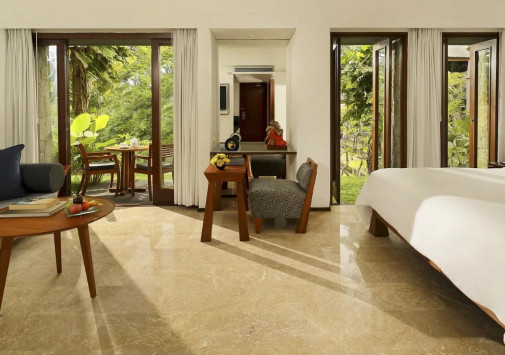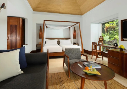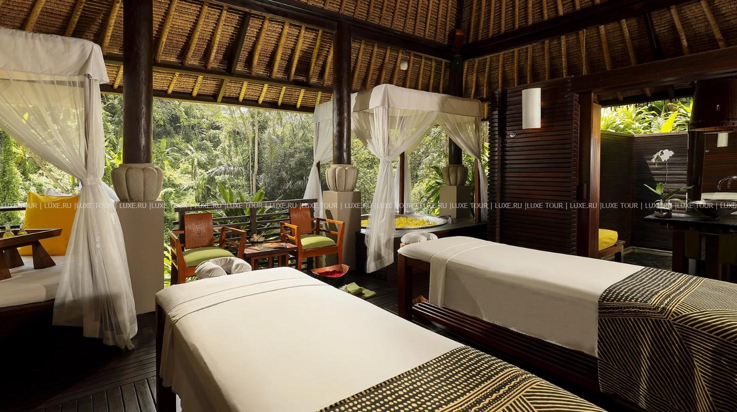 Уютные виллы Maya Ubud Resort & Spa, выполненные в традиционном индонезийском стиле, спрятаны в густых зарослях джунглей, среди 10 гектаров благоухающих тропических садов, которые растянулись на 780 метров вдоль живописного плато, возвышающегося над двумя стремительными реками. В просторных комфортабельных номерах отеля - стильные интерьеры, с полами, выложенными плиткой, оригинальной удобной мебелью, изящными украшениями в индонезийских традициях, с балконов и террас открывается изумительный вид на пышные сады и речные долины. Спа-центр, с 5 процедурными павильонами и горячей джакузи в саду, представляет широкий спектр различных видов массажа, ванн, обертываний и других спа-процедур с использованием местных трав, цветов, ароматических масел. На территории Maya Ubud Resort & Spa находятся: 2 открытых бассейна с видом на реку, освещаемый теннисный корт, площадка для волейбола, мини-гольф, в часе езды от отеля расположены 3 гольф-поля на 18 лунок, предлагаются занятия йогой, туристические маршруты, горный велосипед, курсы кулинарного искусства, развлекательные и экскурсионные программы.