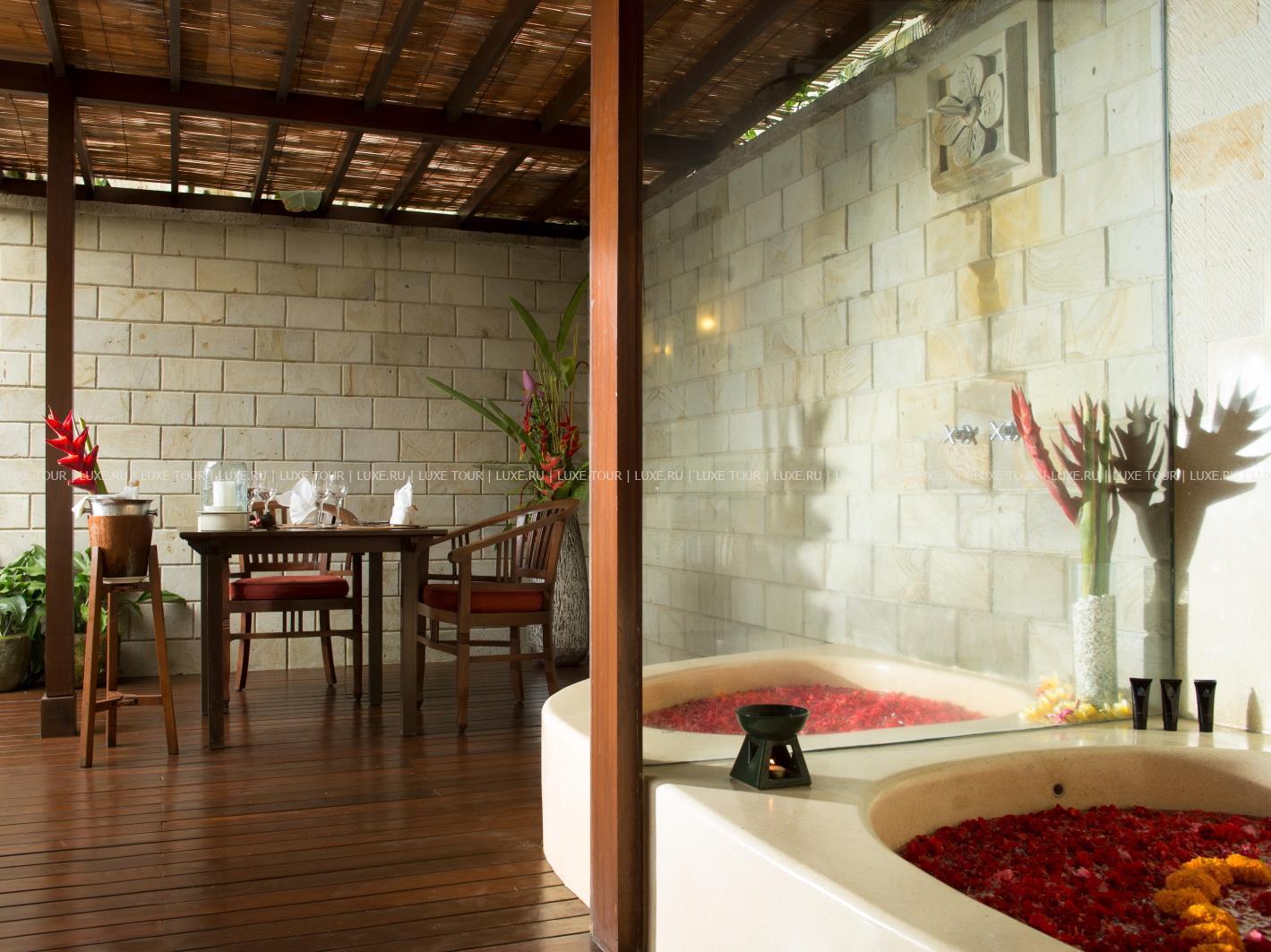 Отель располагает спа центром, который предлагает широкий спектр процедур для тела и лица на основе натуральных косметических продуктов, приготовленных из плодов и трав, выращенных и собранных в ручную, в собственных садах отеля. Высококлассные специалисты применяют современные и традиционные балийские методики. Спа центр предлагает разнообразные программы, в том числе и для пар.