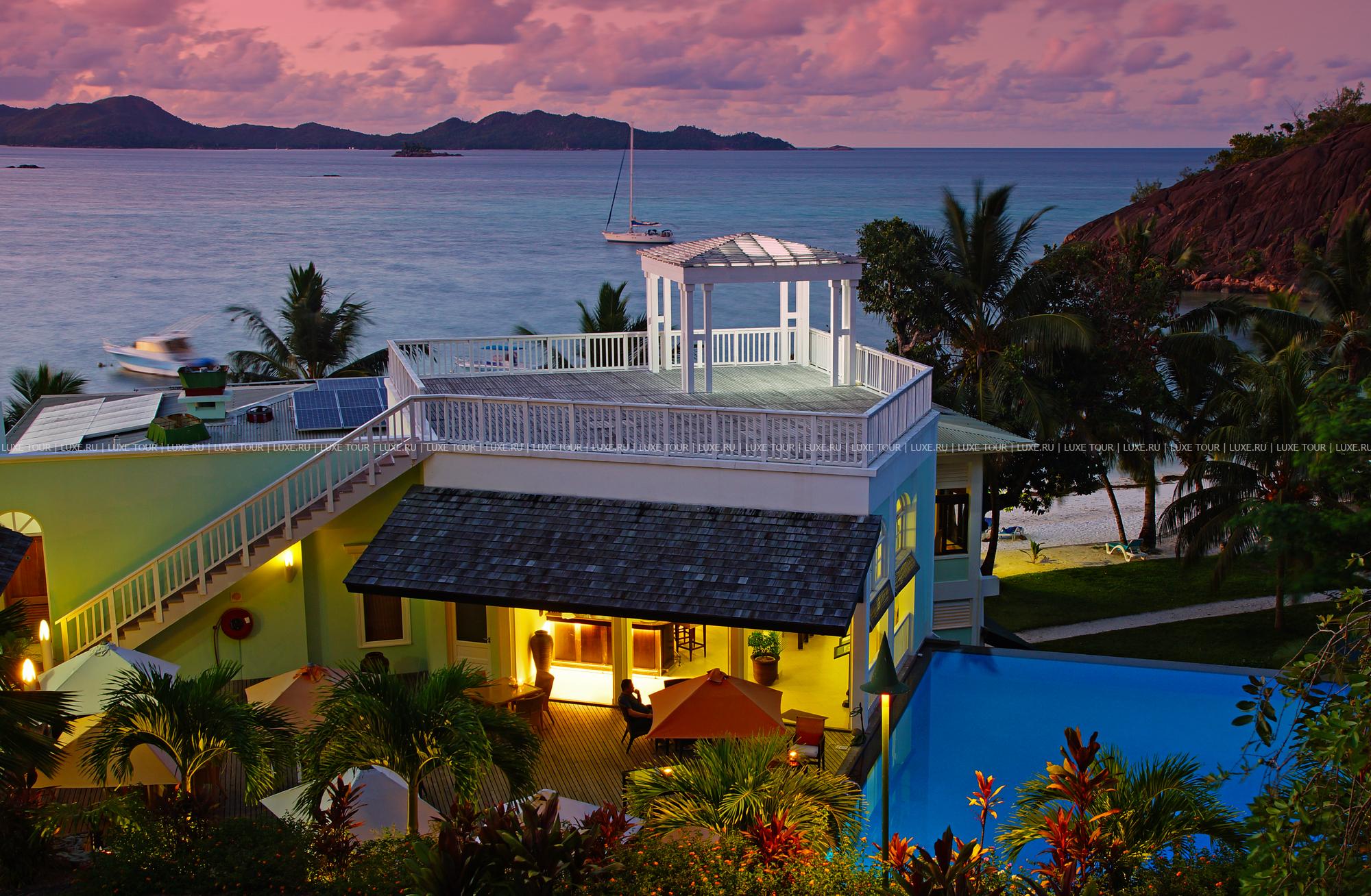 Элегантные коттеджи L`Archipel Praslin, построенные в колониальном стиле, расположены на живописных склонах природного амфитеатра, среди буйной тропической растительности, кокосовых пальм и благоухающих цветов, у пляжа с ласковым песком и теплых вод Индийского океана. На территории L`Archipel Praslin находятся бассейн, тренажерный зал, бильярд, предлагаются различные виды водного спорта, рыбалка, морские прогулки, экскурсионные программы, на террасе у бассейна устраиваются танцевальные вечера. Два ресторана L`Archipel Praslin предлагают оригинальное сочетание местных и интернациональных блюд, дополненное утонченными акцентами французской кухни, а в баре представлен широкий выбор изысканных напитков и коктейлей. L`Archipel Praslin сочетает уютный комфорт, элегантность стиля и экзотическую красоту тропического острова.