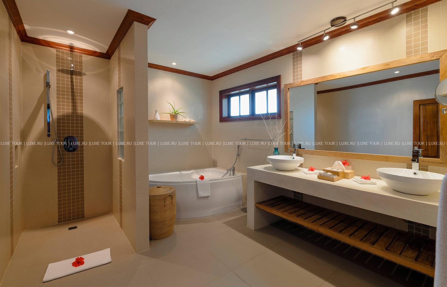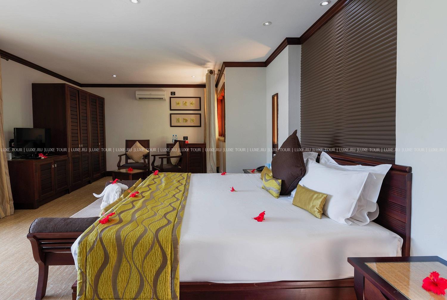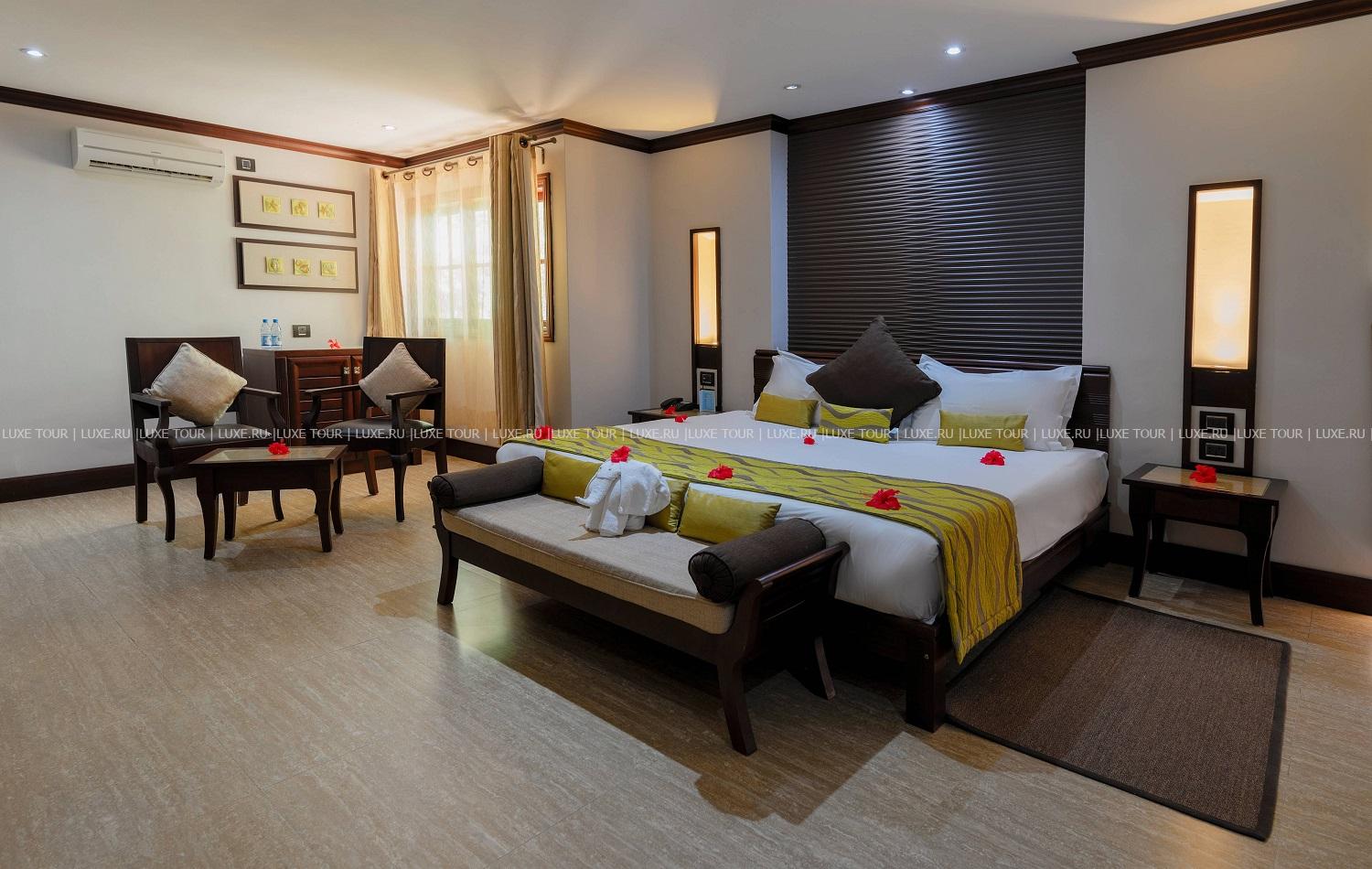 Отель располагает собственным песчаным пляжем Anse Gouvernement.