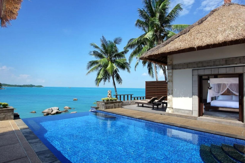 - Отель располагает виллами различных категорий. Просторные виллы сочетают первоклассный комфорт и элегантный дизайн в современном индонезийском стиле, а с террас с собственными бассейнами открывается великолепный вид на бирюзовую гладь Южно-Китайского моря.