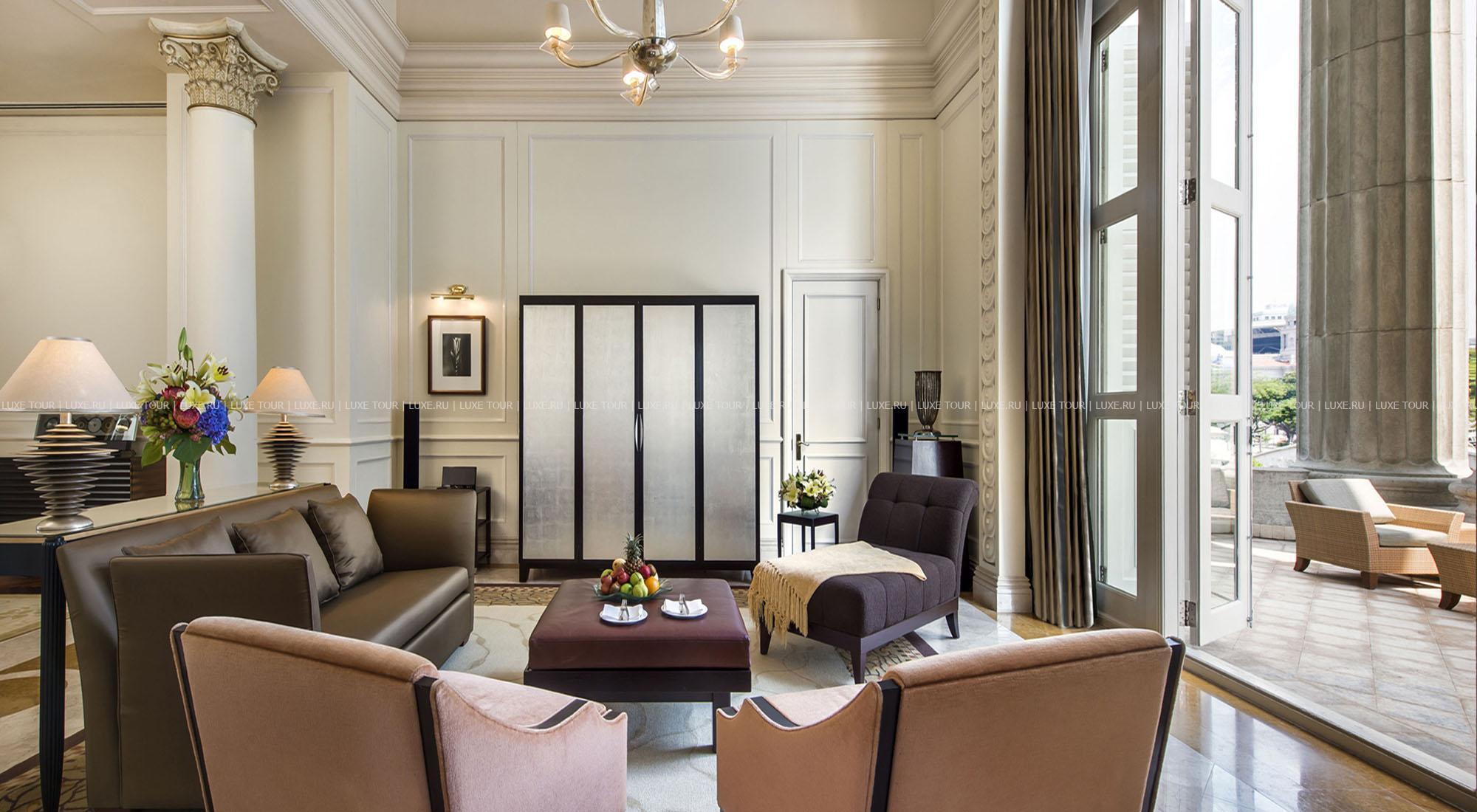Расположенный на берегу залива Marina Bay отель The Fullerton Hotel Singapore, носящий название форта Фуллертона, который находился на этом же месте в XIX веке, открылся в 2001 году. Современный отель, отмеченный множеством международных наград (в том числе как лучший азиатский отель в 2006 году и лучший сингапурский отель в 2007 году по опросу читателей Condé Nast Traveler) за прекрасный сервис, сбалансированный дизайн, новейшие спа-технологии и кулинарные изыски размешается в неоклассическом здании, которое было построено в 1928 году. Каждая категория элегантных комнат и номеров с современными удобствами носит название, отражающее богатое прошлое этого восьмиэтажного классического здания с изящными дорическими колоннами и парящим портиком. В связи с уникальным преобразованием в нем насчитывается более 90 различных конфигураций номеров, в дизайне которых сохранены некоторые исторические архитектурные детали и мотивы.