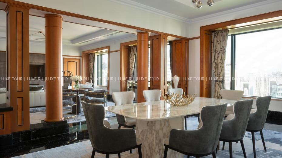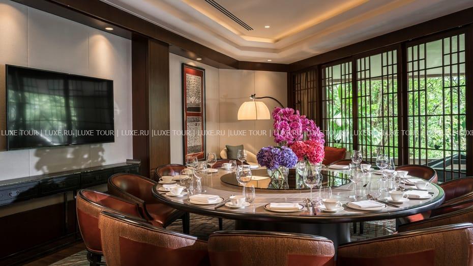 В коллекции отеля свыше 1500 подлинных произведений азиатского искусства, многие из которых украшают просторные, изысканно обставленные номера. Эффектное сочетание предметов искусства, тканей бежевых, черных, зеленых и розовых тонов, старинной мебели, узорчатых ваз, грациозных ламп и цветочных композиций создает исключительную атмосферу каждого номера, которая будет определять ваше пребывание в стенах отеля. Каждая деталь здесь под стать продуманному до мелочей оформлению: безупречный сервис и гостеприимство будут следовать за вами и в славящиеся своими славными кулинарными традициями рестораны, и в обеспечивающий полное отдохновение и комфорт центр красоты и здоровья. К услугам гостей: 2 ресторана и бар, а также Спа-центр, предлагающий открытый бассейн, сауны, парные, теннисные корты, гидромассажные ванны и тренажерный зал.