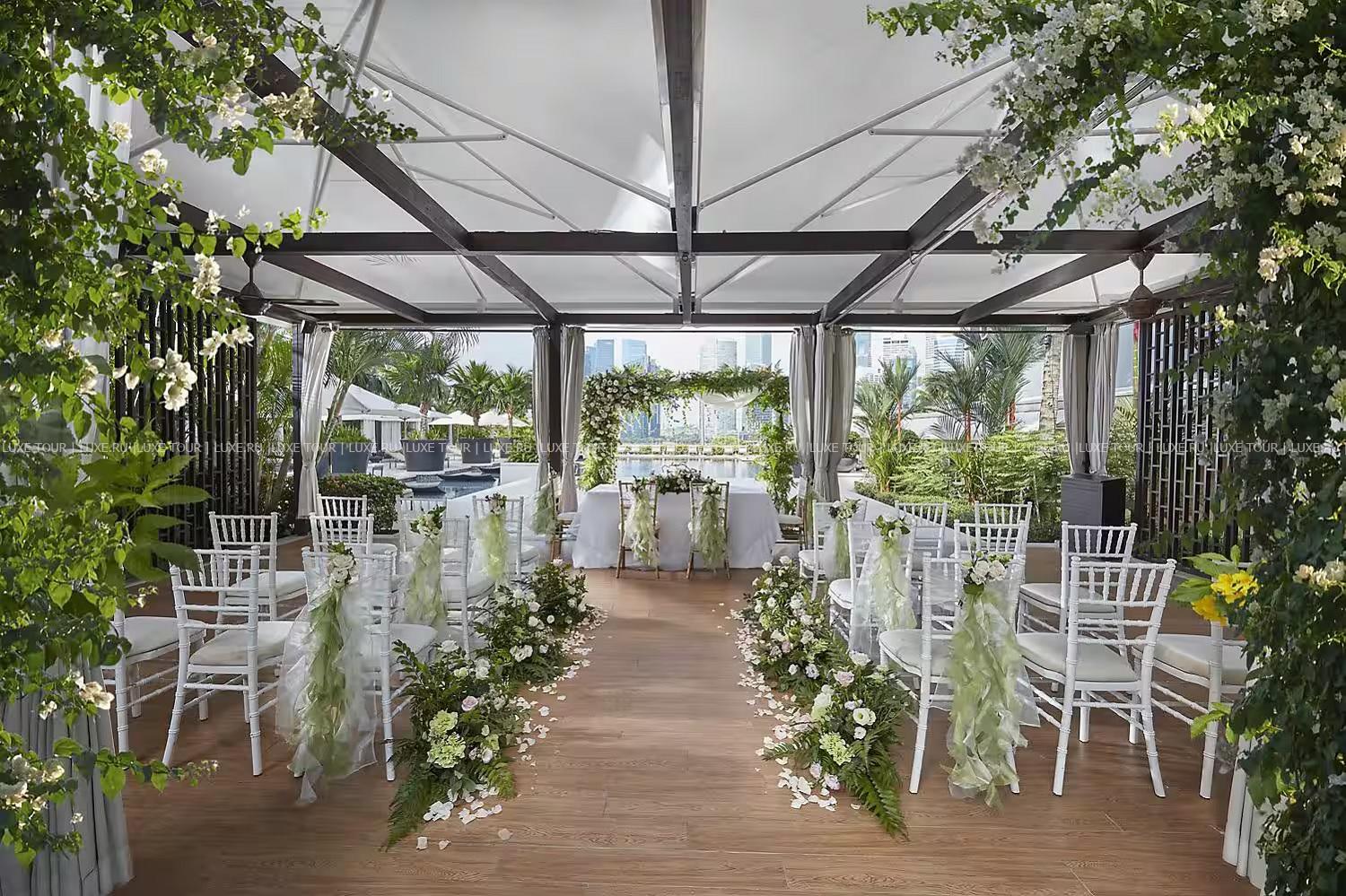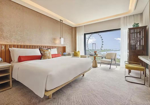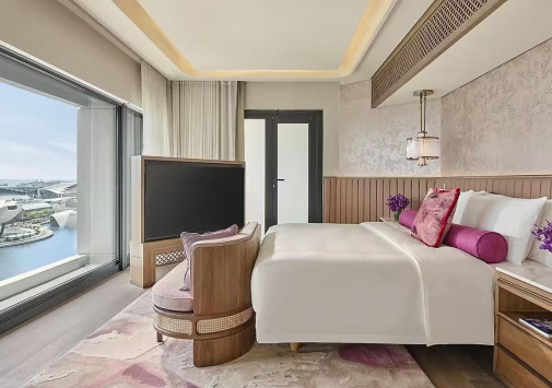 Отель расположен на берегу залива Марина Бэй, напротив театра «Эспланада», рядом с трассой Формулы-1, деловым центром и главными достопримечательностями Сингапура, а также в 20 минутах езды от международного аэропорта Чанги.