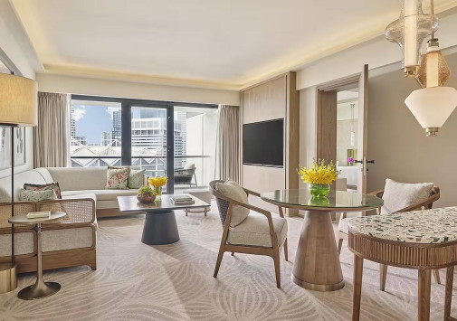 Для гостей – залы для деловых и торжественных мероприятий, включая зал Oriental, вмещающий до 500 человек, панорамная терраса Harbour площадью 600 м2, бизнес-центр, Wi-Fi, парковка, аренда машин, прокат велосипедов, услуги консьержа, услуги прачечной.
