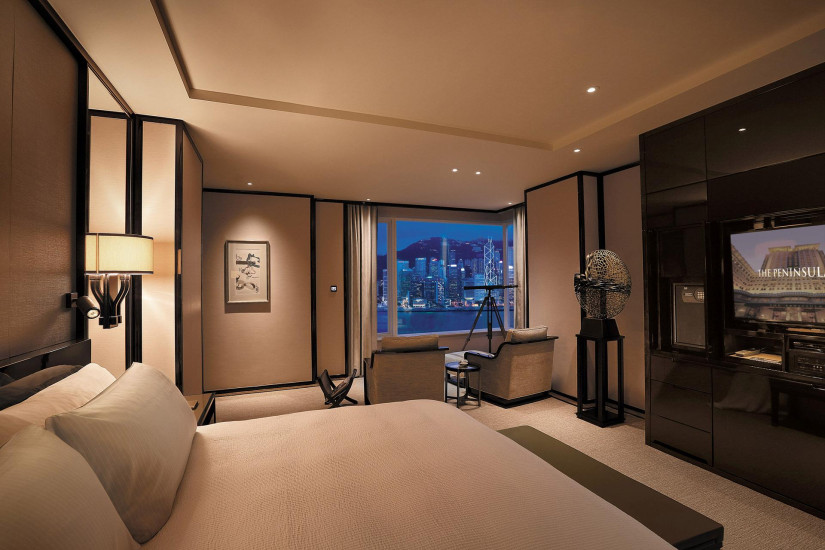 - 107 м2. Состоит из спальни с кроватью king-size, гостиной комнаты с телескопом, камином и рабочей зоной, ванной комнаты с угловой ванной и душем, отдельной туалетной комнаты, гостевой туалетной комнаты, гардеробной. Панорамный вид на гавань Виктория. Номера располагаются с 17 по 25 этаж и на 27 этаже здания Peninsula Tower. Максимальное размещение - 3 человека.