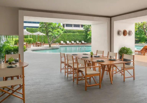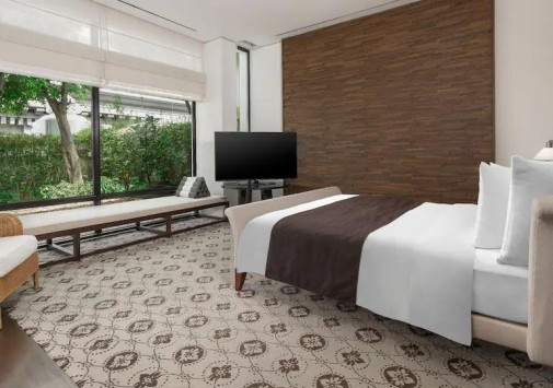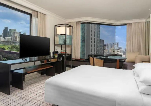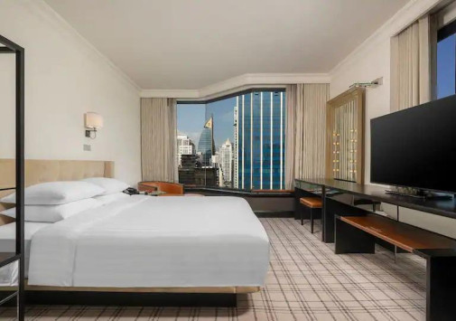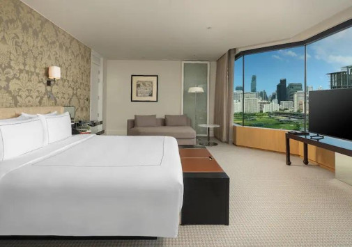 Современное, сверкающее зеркалами окон, многоэтажное здание Grand Hyatt Erawan Bangkok возвышается в самом сердце Бангкока, рядом со знаменитым храмом Erawan, деловым и торговым центром столицы. В просторных номерах отеля – стильные интерьеры, с элегантной мебелью, мягкими коврами на полах, со вкусом подобранными элементами декора, панорамными окнами, из которых открывается великолепный вид на окружающие городские ландшафты. Для гостей, предпочитающих тишину и покой и желающих наслаждаться спа процедурами прямо в номере, предлагаются номера, которые расположены у спа-центра, являющегося гордостью отеля. Здесь, в живописном саду есть всё для великолепного отдыха, релаксации и восстановления сил: бассейн с террасой для отдыха, джакузи, сауна, парная, несколько процедурных павильонов, салон красоты, зоны отдыха и многое другое.
