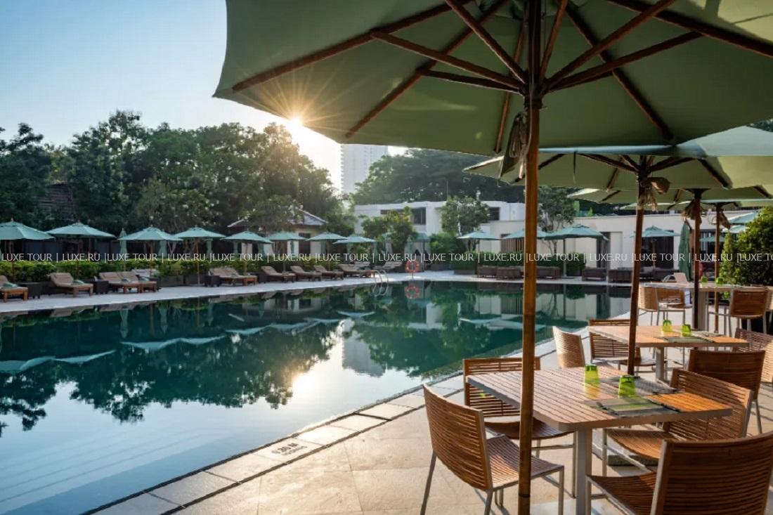The Sukhothai, расположенный в деловом центре Бангкока, рядом с основными достопримечательностями города, сочетает изящество вкуса и самобытность тайских традиций – от элегантного холла с мягким освещением и композициями из экзотических растений до, навевающего умиротворенность, внутреннего дворика с ухоженным садом, раскидистыми пальмами и живописными водоемами с цветами лотоса. В номерах, оборудованных по последним технологиям, из окон открывается чудесный вид на сад и город. В отеле открыт спа-центр, предлагающие широкий спектр спа процедур. Также есть фитнес-центр. На территории The Sukhothai находятся несколько элегантных ресторанов, где предлагаются деликатесы тайской кухни, блюда итальянской кухни в сопровождении изысканной карты вин, блюда азиатской кухни.
