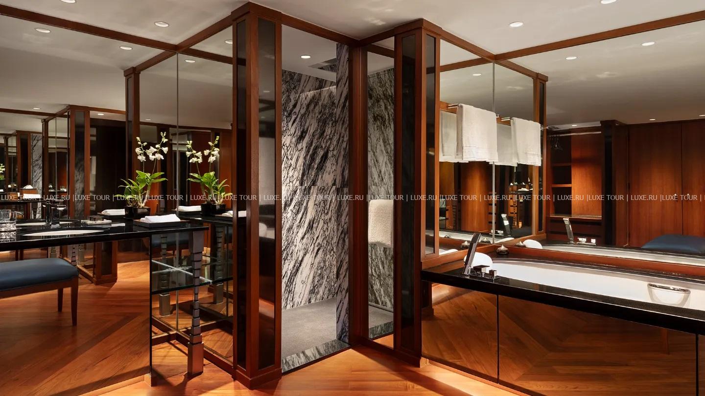 76 м2. Состоит из спальни с кровтаью king-size или двумя кроватями twin, гостиной зоны, ванной комнаты, гардеробной, террасы. Максимальное размещение — 3 человека.