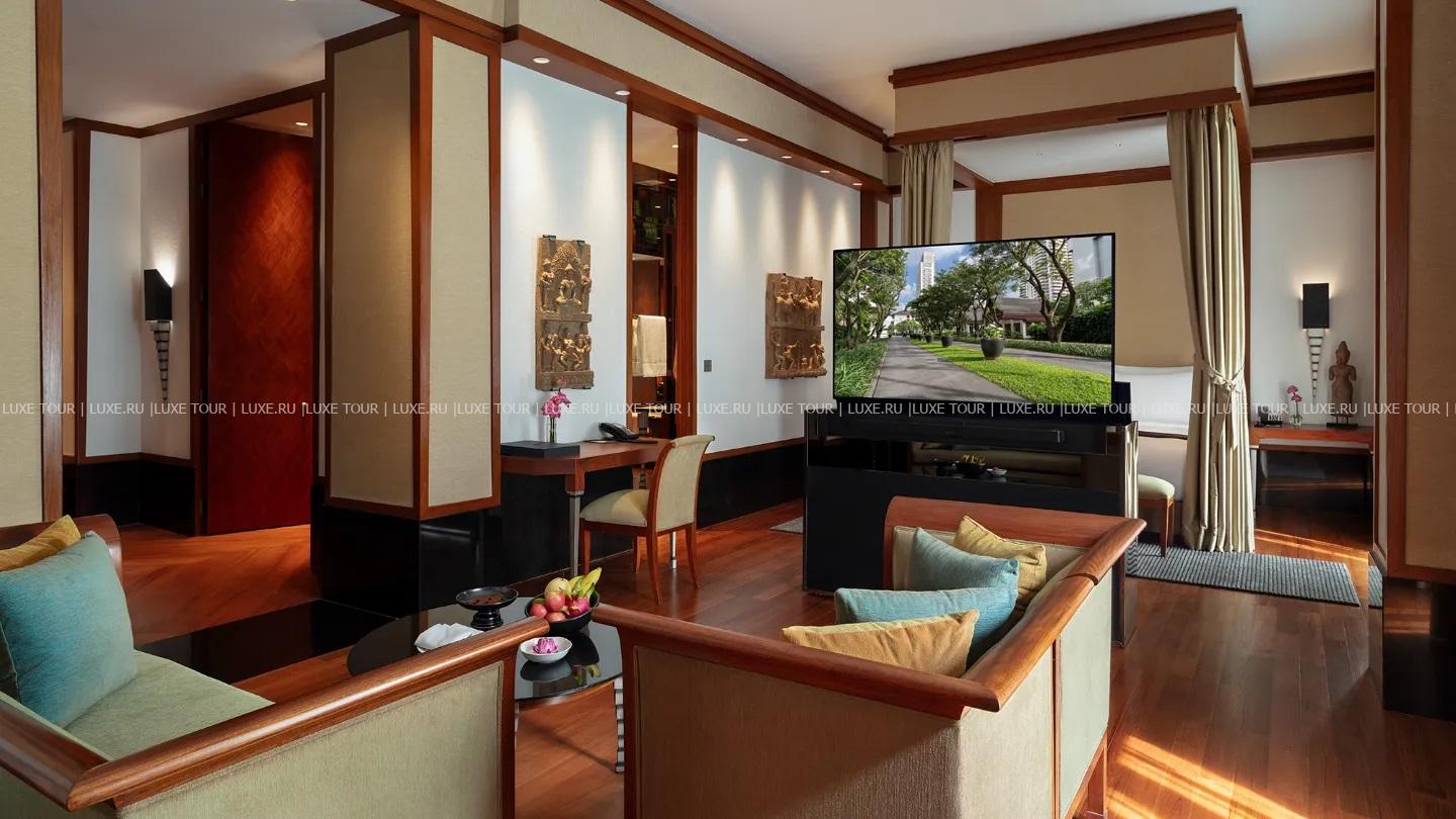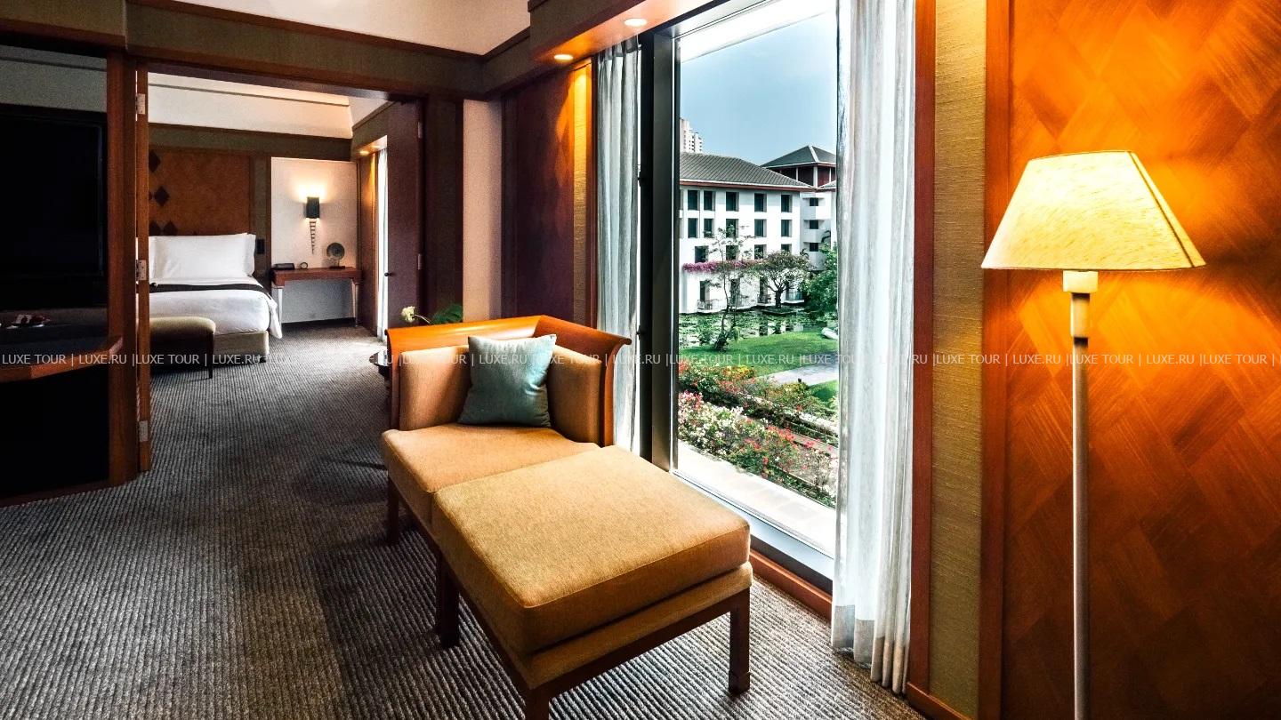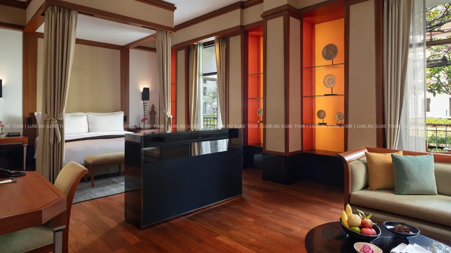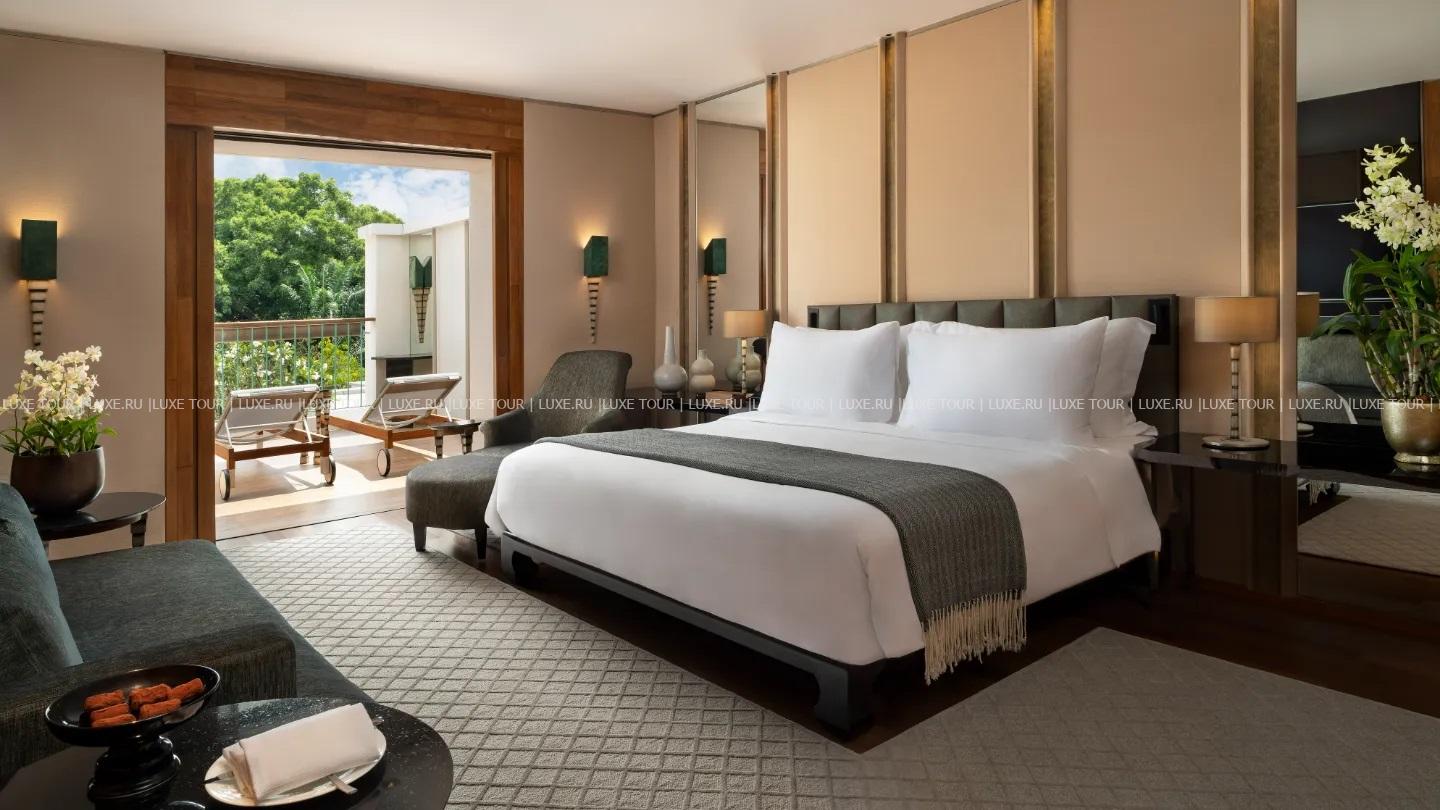 45 м2. Состоит из спальни с кроватью king-size или двумя кроватями twin, зоны отдыха, ванной комнаты. Вид на бассейн и сад. Максимальное размещение — 2 человека.