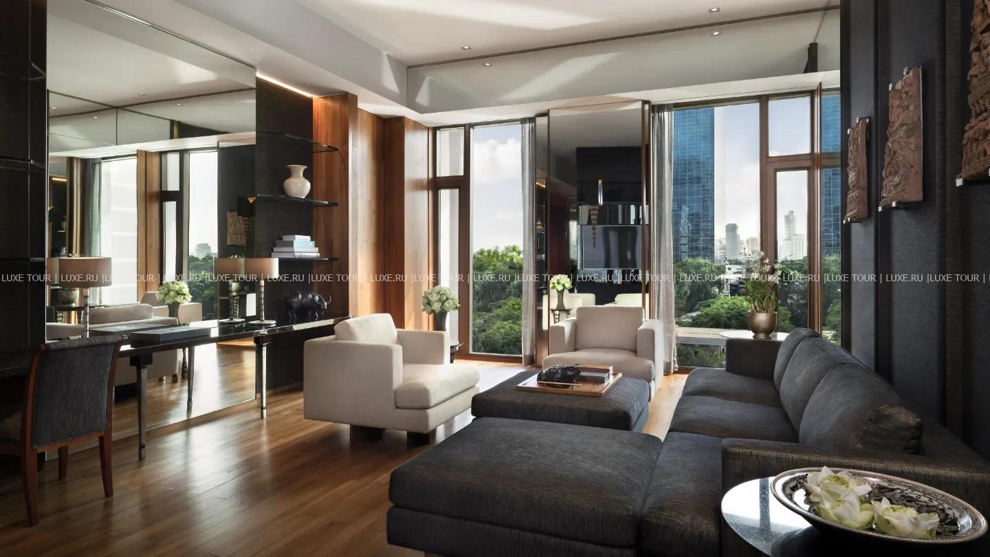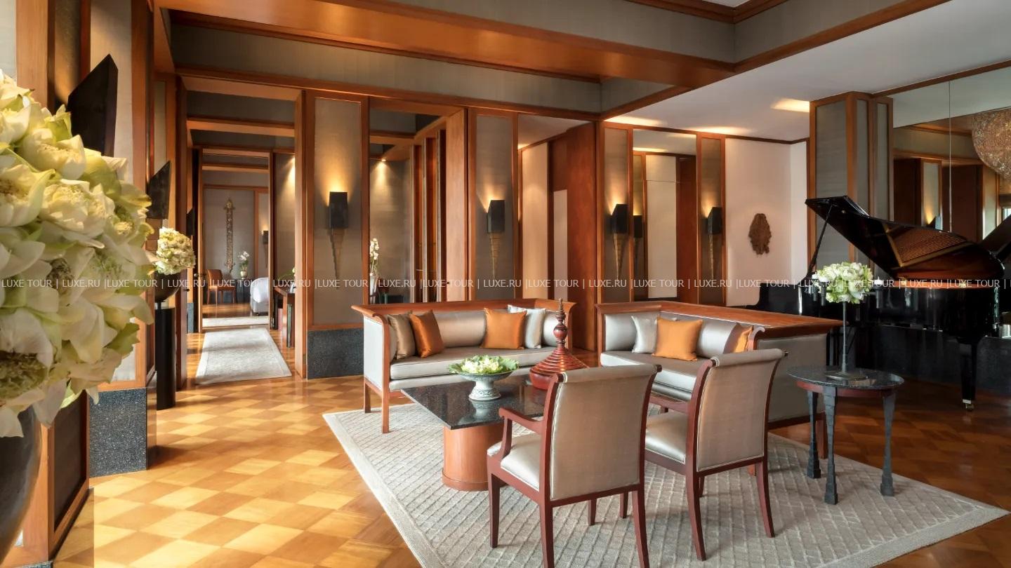 198 м2. Состоит из спальни с кроватью king-size, гостиной с роялем, столовой, кухни, кабинета, гардеробной, ванной комнаты. Максимальное размещение — 3 человека.