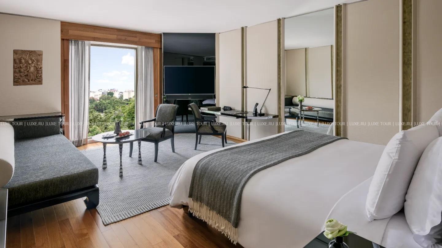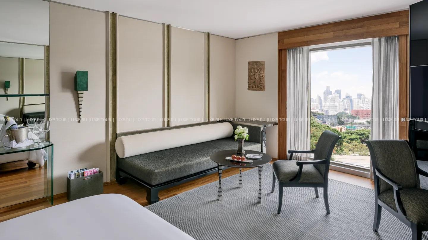 38 м2. Состоит из спальни с кроватью king-size или двумя кроватями twin, зоны отдыха, ванной комнаты. Максимальное размещение — 2 человека.