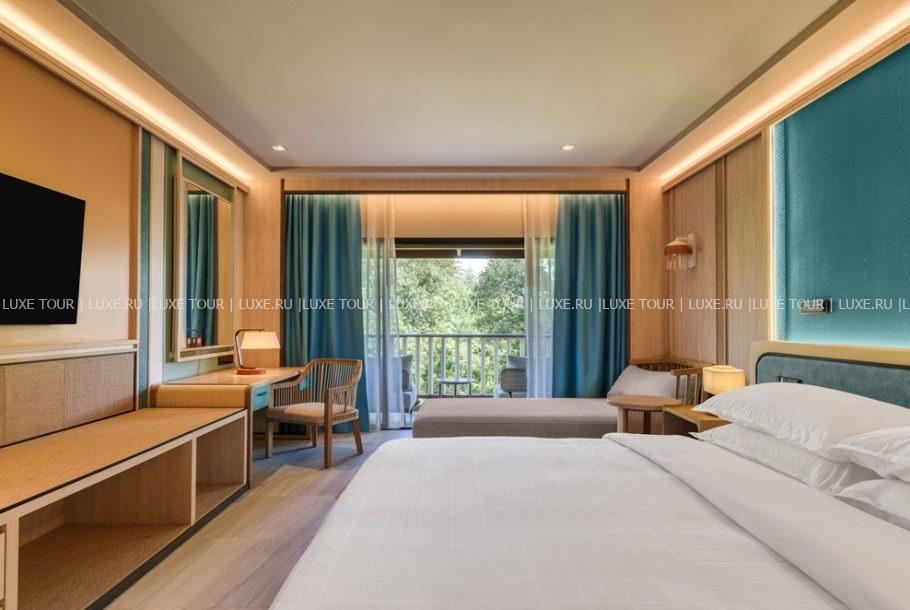 42 м2. Состоит из спальни с кроватью king-size или двумя кроватями twin, зоны отдыха, ванной комнаты, балкона с видом на сады. Максимальное размещение – 2 человека.