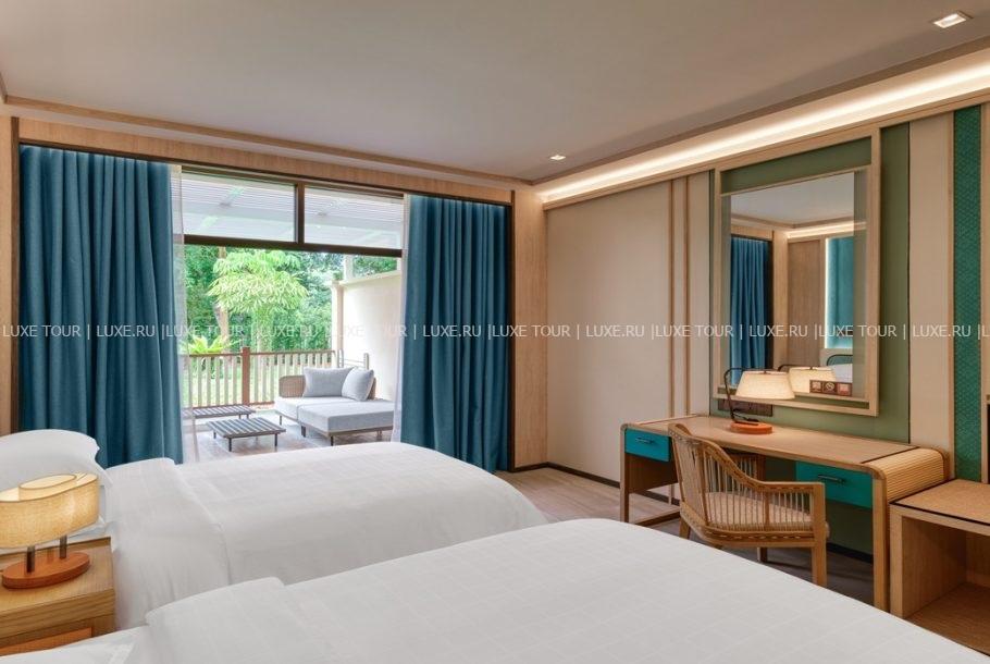 42 м2. Состоит из спальни с кроватью king-size или двумя кроватями twin, зоны отдыха с кровать-диваном, ванной комнаты, мебелированного балкона с видом на сады. Максимальное размещение – 2 человека.