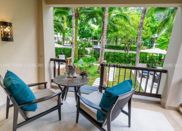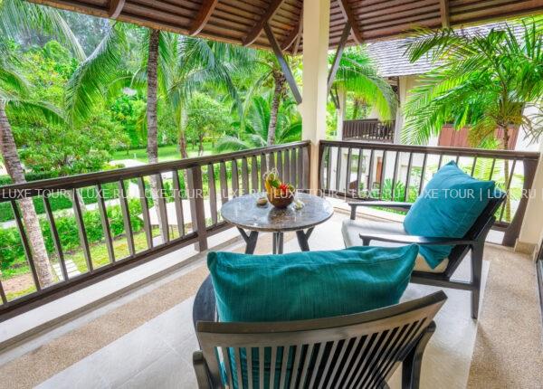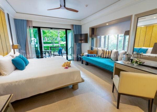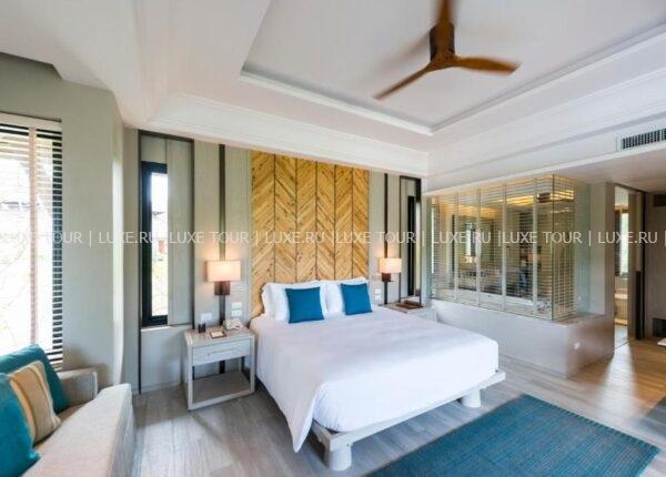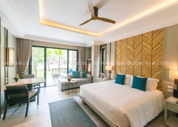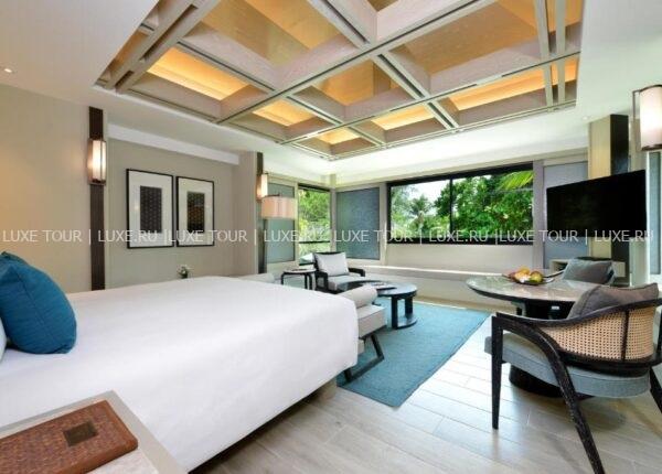 Отель располагает номерами различных категорий. В номерах – элегантные интерьеры в современном тайском стиле, с отделкой из натурального дерева, удобной мебелью, изысканными элементами декора, с балконов открывается прекрасный вид на море, сады и горы. В каждом номере: Deluxe Pavilion Room: