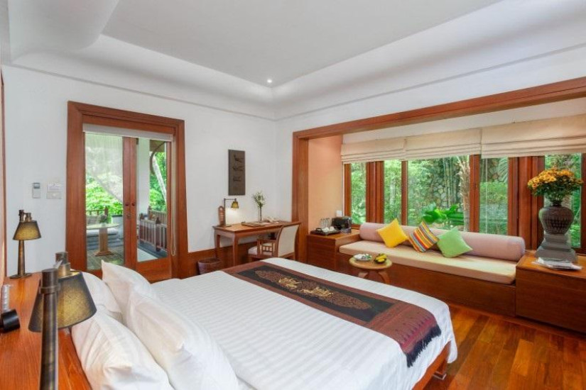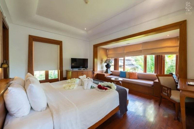- В отеле комфортабельные номера различных категорий. В номерах – элегантные интерьеры, сочетающие современный стиль и тайские мотивы, с деревянными полами и отделкой из тикового дерева, удобной мебелью, изысканными украшениями, уютными террасами, окруженными густой зеленью сада.