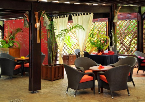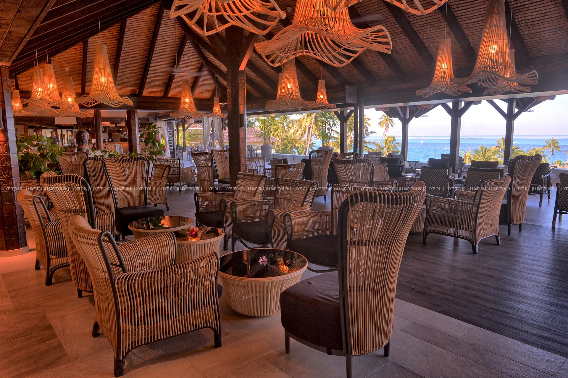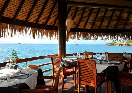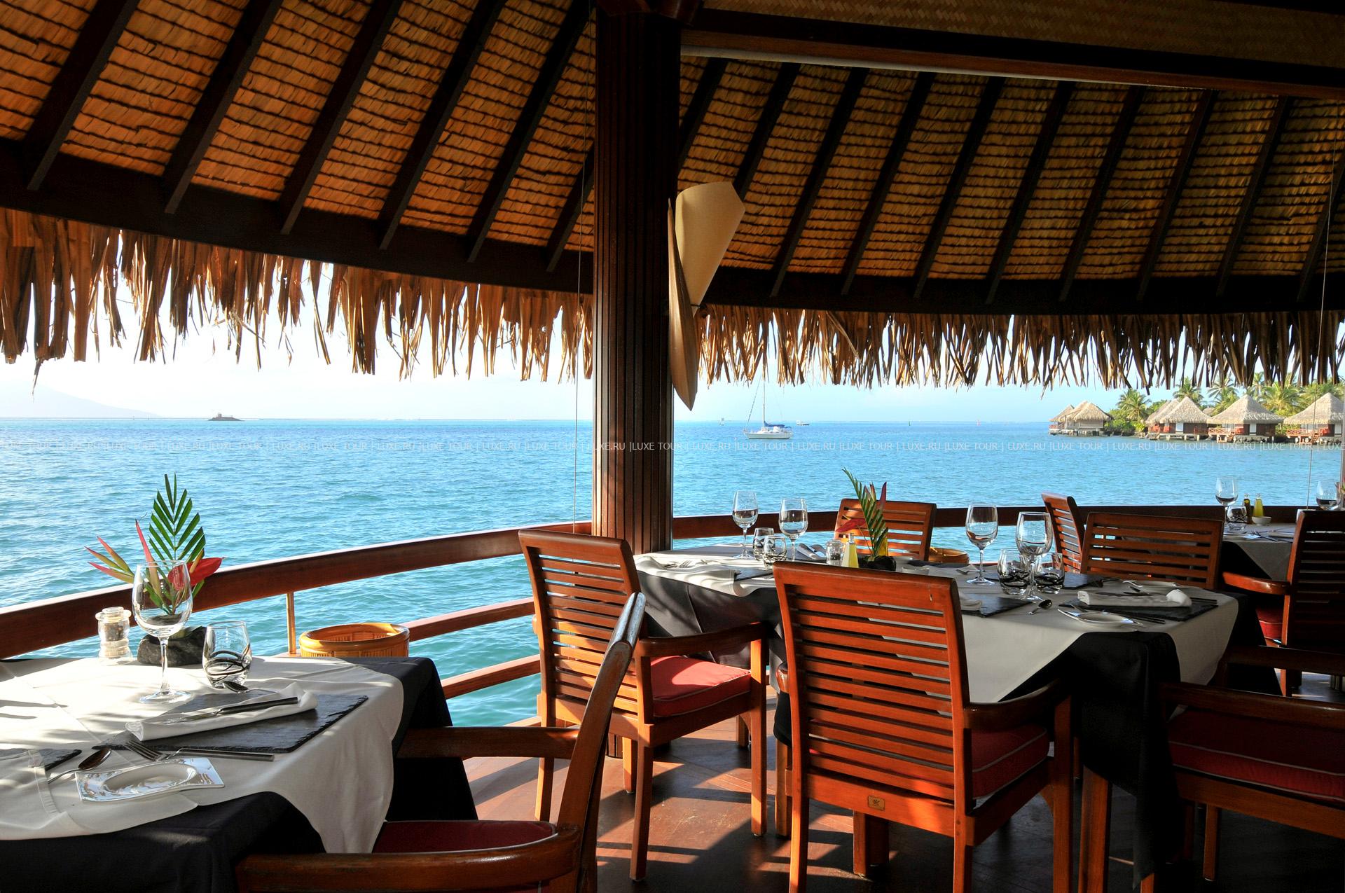 The Tiare restaurant — расположен на первом этаже отеля с видами на бассейн, водопад и на остров Муреа, таитянская и интернациональная кухни.