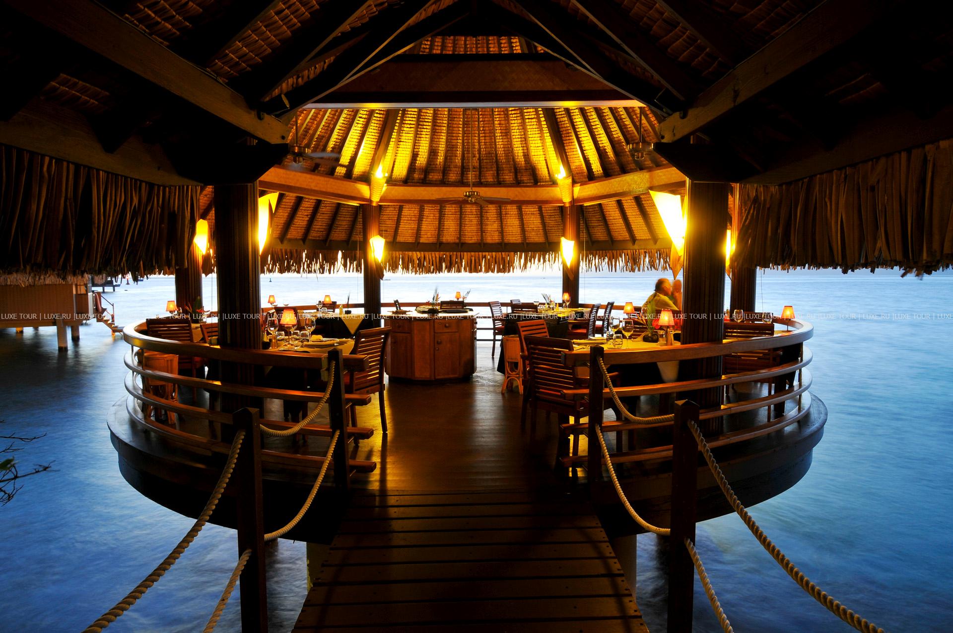 Le Lotus Overwater restaurant — находится в лагуне на воде, гастрономический ресторан, французская кухня.