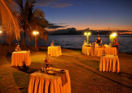 На открытой кухне проходит шоу приготовления национальных блюд на глазах гостей, три раза в неделю ужин совмещен с программой Les Grands Ballets de TAHITI.