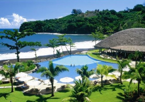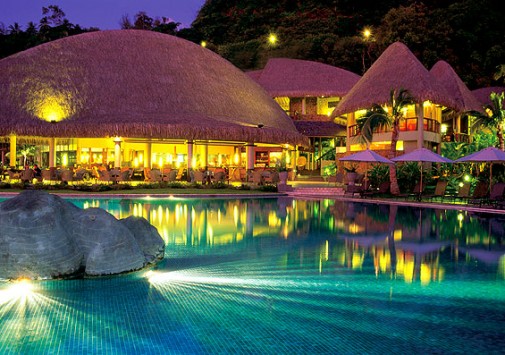 Отель расположен на берегу лагуны, на пляже Лафайет — одном из лучших пляжей острова Таити.