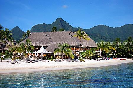 Отель расположен непосредственно на пляже острова Муреа, 10 минут перелета из международного аэропорта Таити, трансфер на катамаране составляет 30 минут.